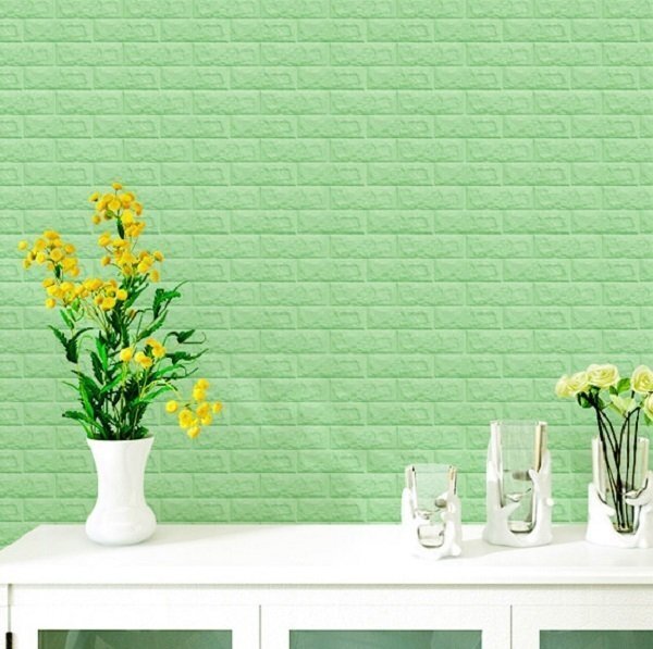 【50枚】高品質 3D クッション 壁 シール ミントグリーン/黄緑 レンガ調 糊付き リメイク 70×77cm 耐水 抗菌 傷防止