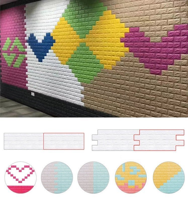 30枚set 高品質 3D クッション 壁 シール ピンク レンガ調 糊付き リメイク 70×77cm 耐水 抗菌 傷防止
