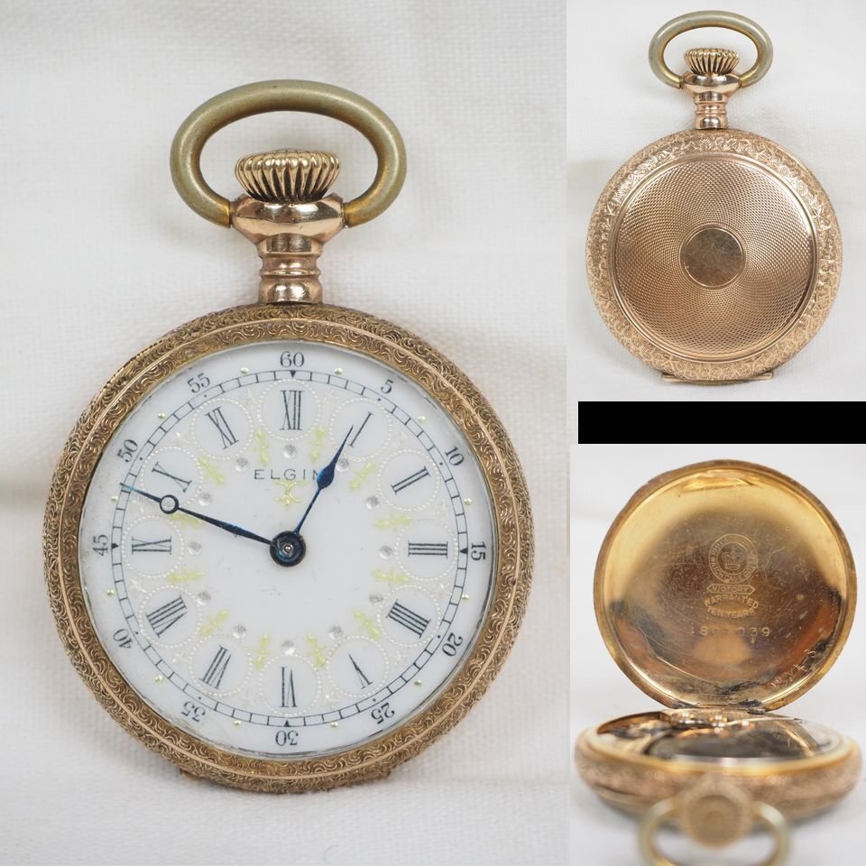商品説明 | 龍頭含まず直径約 3.3cm 全体約 5.3cm 厚み約 0.9cm ご覧のように、19世紀末~20世紀初頭 ゴールドフィルド ELGIN エルジン懐中時計です。快調に動作しています。文字盤の作りが非常に細かい、拘りの逸品です。擦れ、汚れ等がありますが、状態はとても良好です、詳しくは写真でご確認ください。オーバーホールなしの現状販売になります。 |