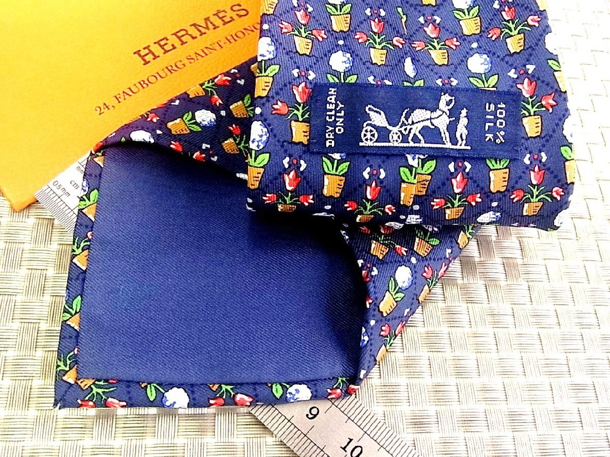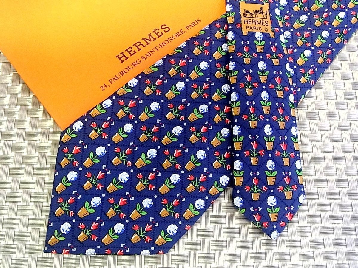 ☆40430D☆状態並品【花 植物 植木鉢 柄】エルメス【HERMES】ネクタイ