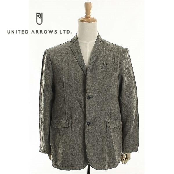 A4431/美品 春夏 背抜き UNITED ARROWS ユナイテッドアローズ コットン リネン シワ加工 テーラード シングル2Bジャケット L 灰色/メンズ