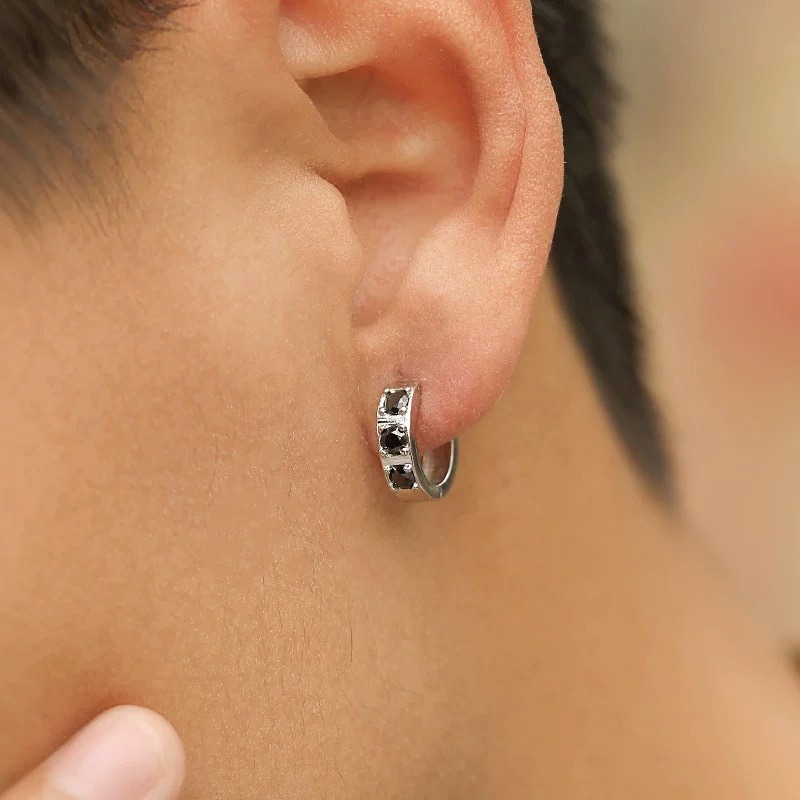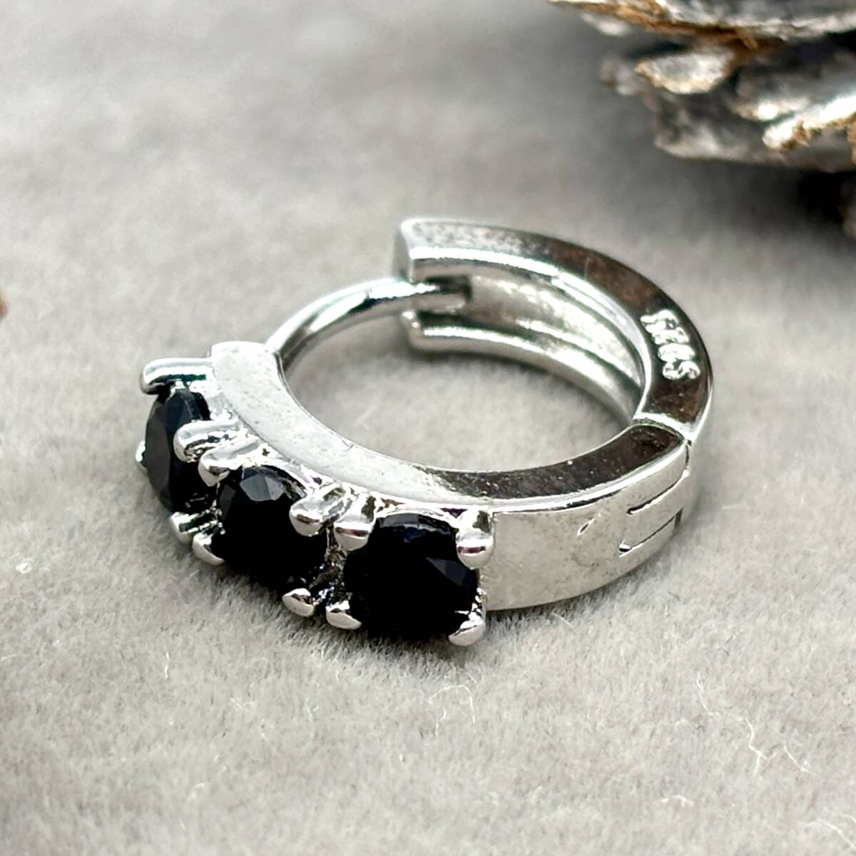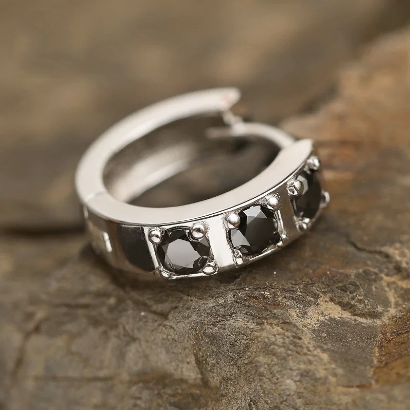 ジルコニア ストーン フープピアス ◆ リングピアス メンズ シルバー925 18G B 新品 未使用 ストリート カジュアル 片耳用 【PN294-8】