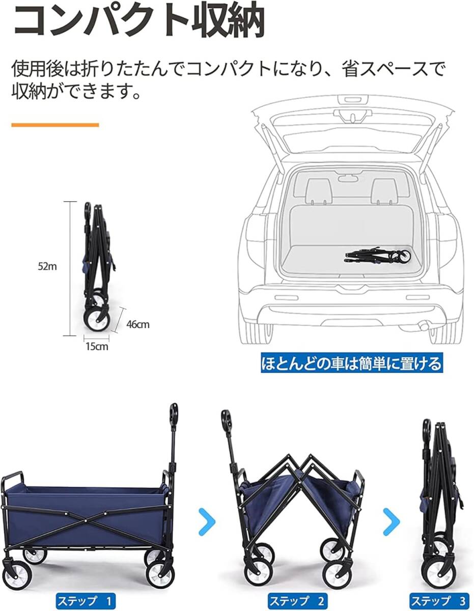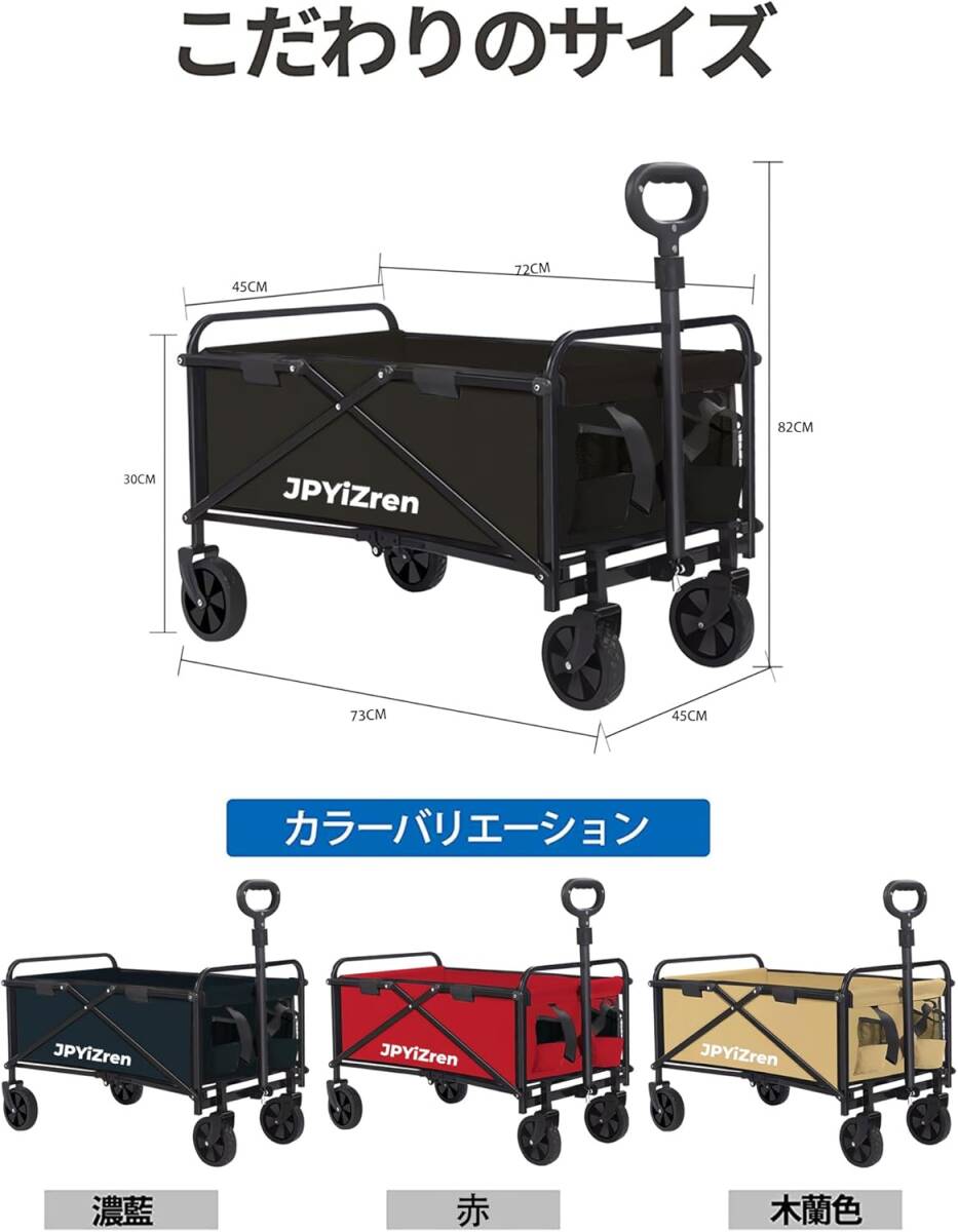 ブラック色 JPYiZren キャリーワゴン 折りたたみ式キャリーカート アウトドアキャンプカート ワイドタイヤ搭載 大容量120L