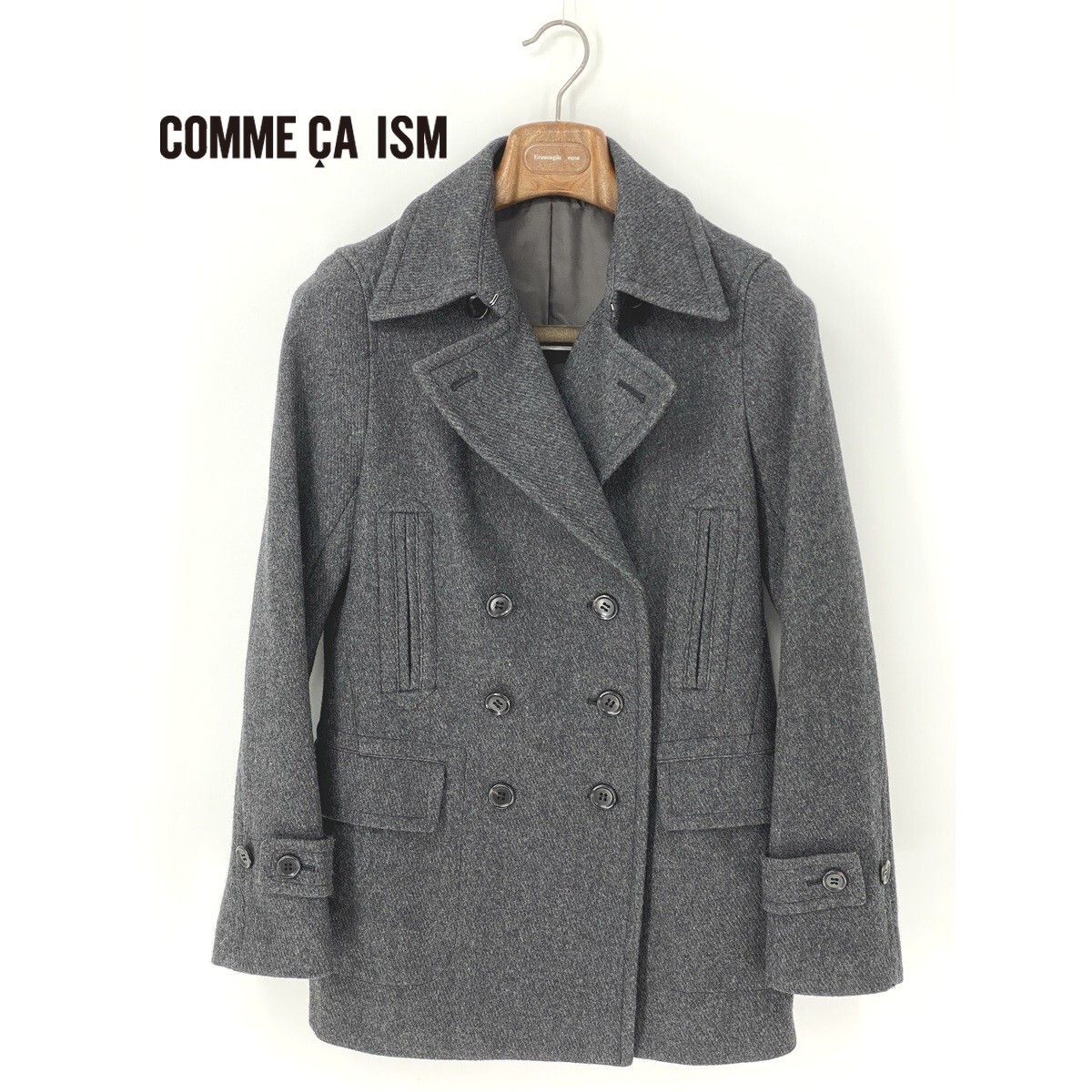 A9288/極美品 秋冬 COMME CA DU MODE コムサデモード ウール ハーフ ダブル トレンチコート ジャケット 11 L程 灰色 日本製 レディース
