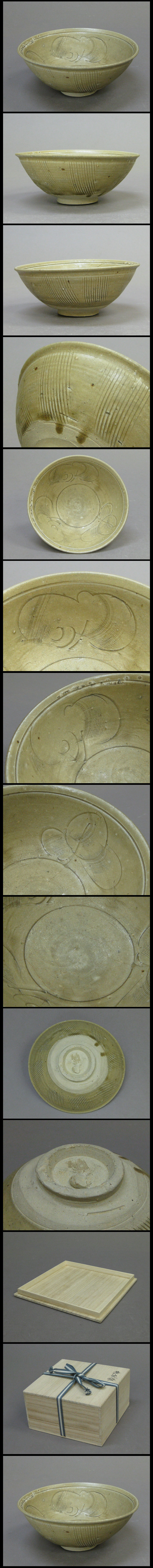★中国美術 青磁陰刻花文/茶碗 付箱