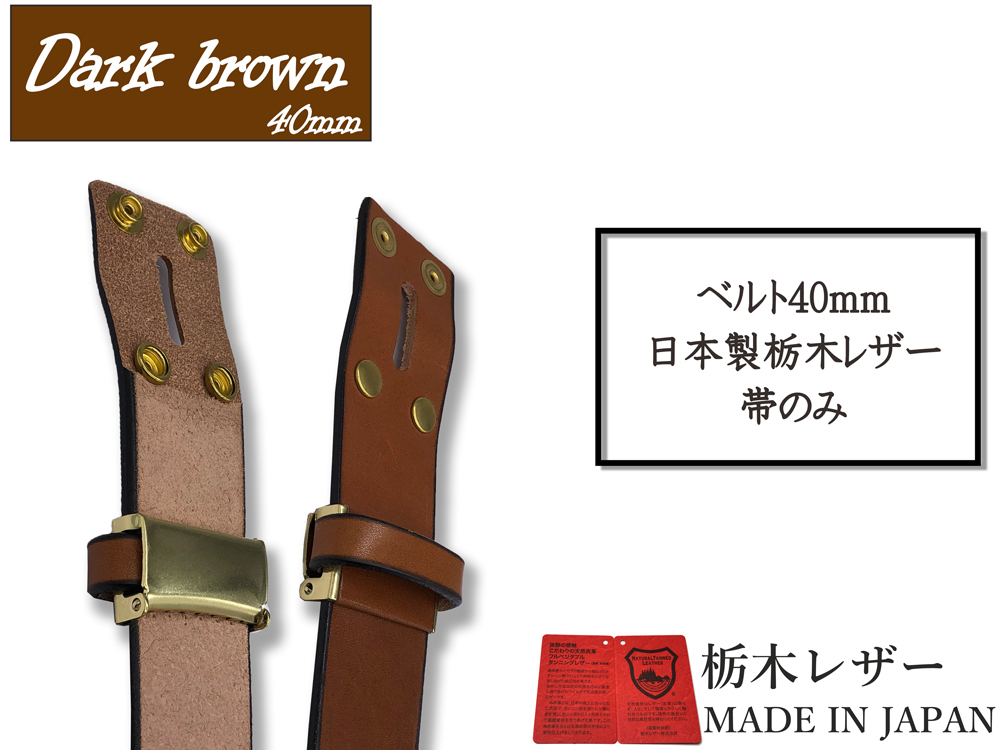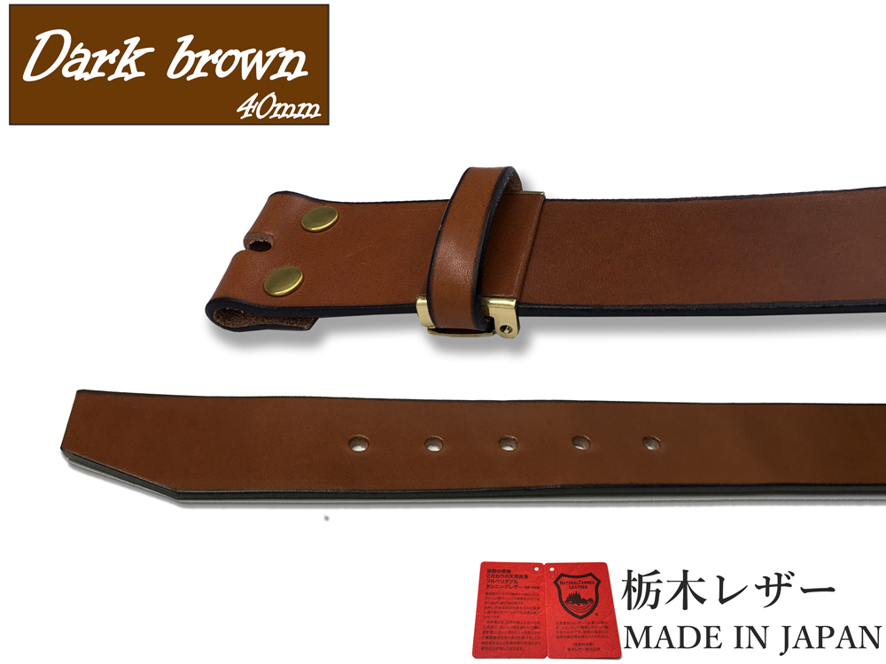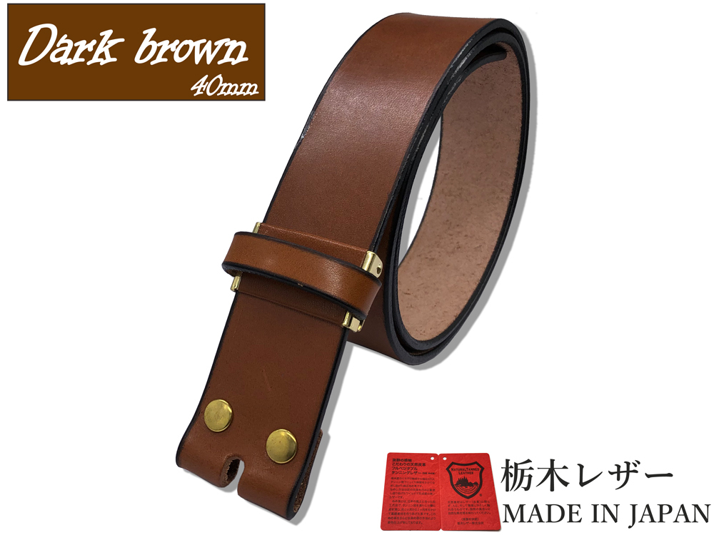 新品 栃木レザー カジュアルベルト Mサイズ メンズ 無地 帯のみ 本革 交換用 取り換え 牛革 40mm 茶色 チョコ 金ホック W041DBG