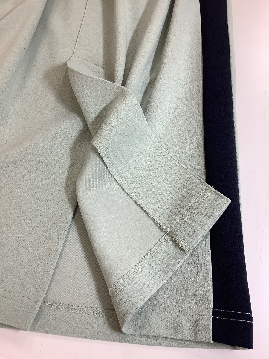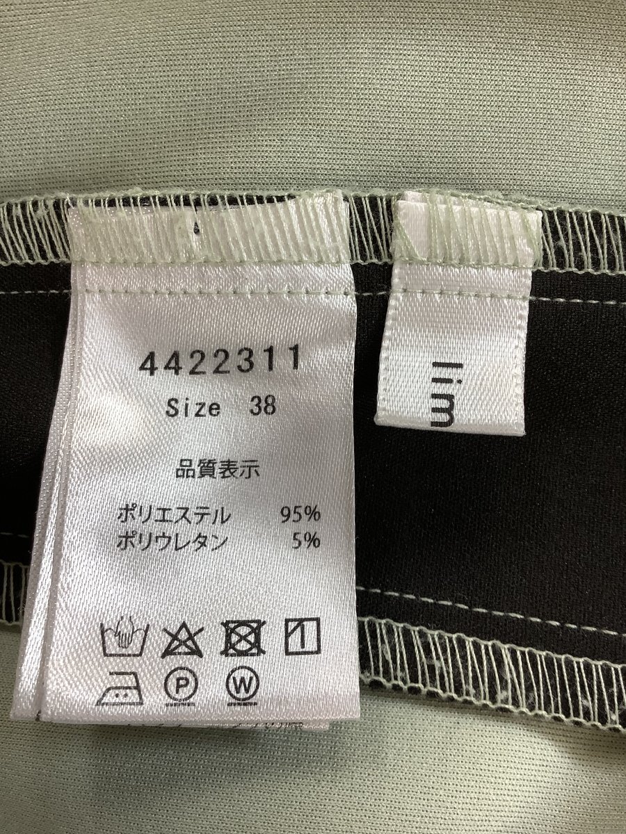 | 管理番号:137570 limala 薄グリーンに黒ライン ストレッチスカート ウエストゴム 美品 表示サイズ:38 実寸(参考)