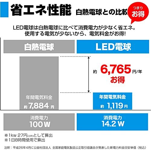 「エルパ(ELPA)LED電球A形広配光E26昼光色相当屋内用LDA14D-G-G5105」▼4901087219964▼(商品説明)・昼光色 100W型 E26 LDA14D-G-G5105・軽量・コンパクト設計・ワイドに明るい広配光設計です。・密閉型器具対応・省エネ法2027年度目標基準達成説明 ■交流電源:100V 50/60Hz共用 ■口金:E26 ■サイズ:全長122X外径65(mm) ■質量:56g ■定格消費電力:14.2W ■定格入力電流:250mA ■設計寿命:40000h ■全光束:1650lm ■エネルギー消費効率:116.2lm/W ■光色:昼光色相当 ■屋内用