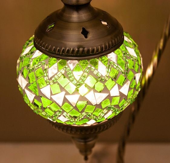 細かいガラスがちりばめられたシェードを通す光はどこかエチゾチックな雰囲気。