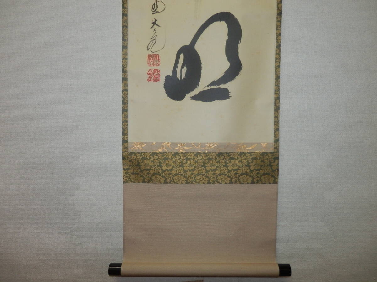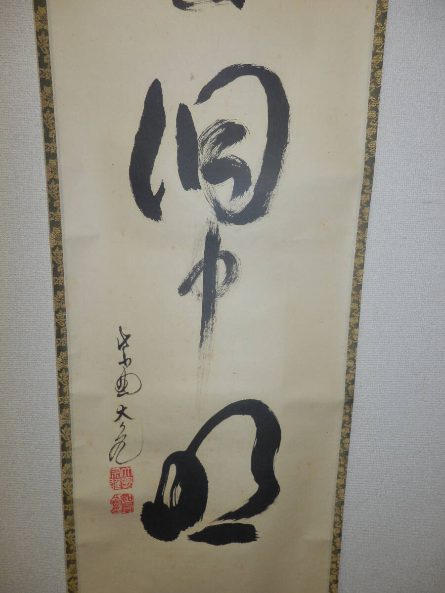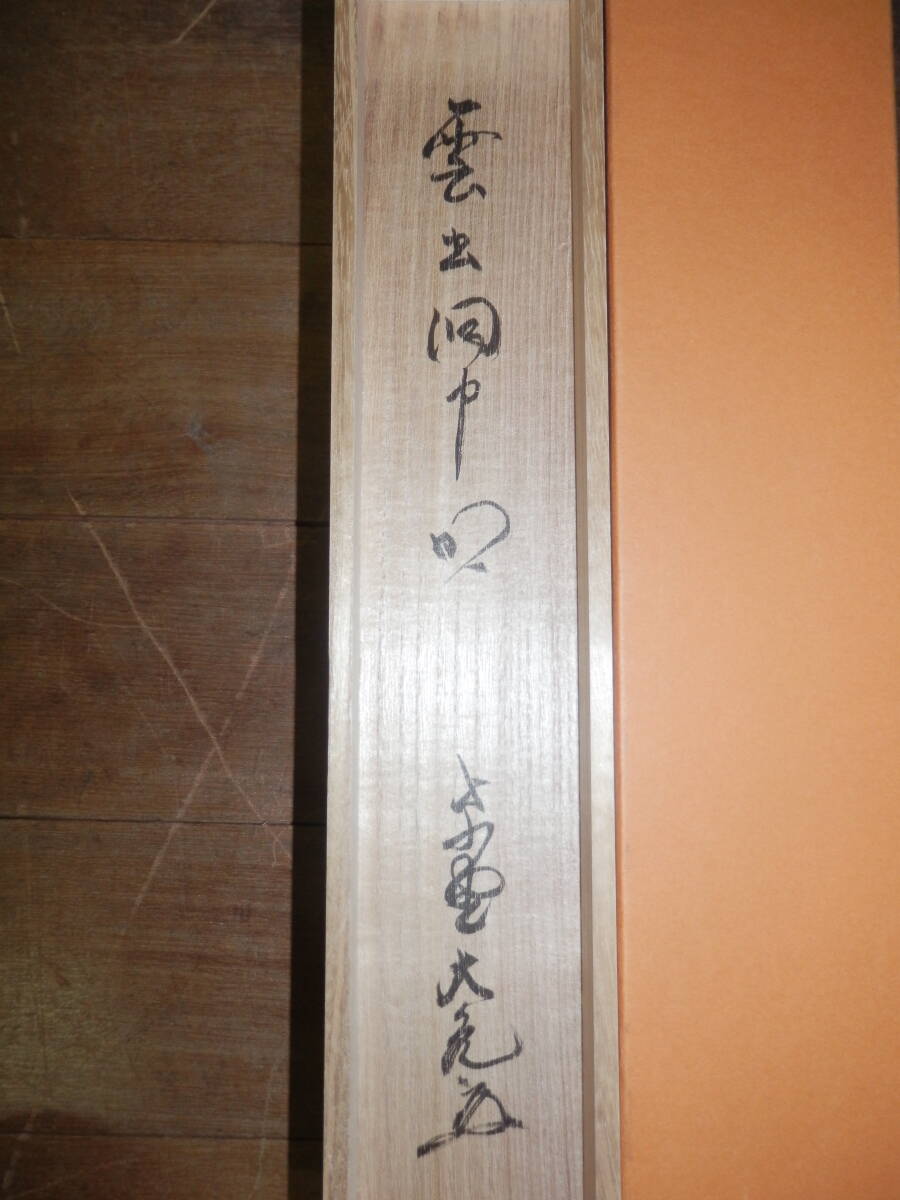 「中古品・掛軸」 大徳寺の如意庵の立花大亀師筆の一行書の掛軸です。「雲出洞中明」です。 シミ、折れ等有。 軸幅約37cm 長さ約193cm 桐共箱「ヤケ、シミ等有」。 『真作保証・真作でないと証明された場合は返品を承ります』。どうぞ宜しく。