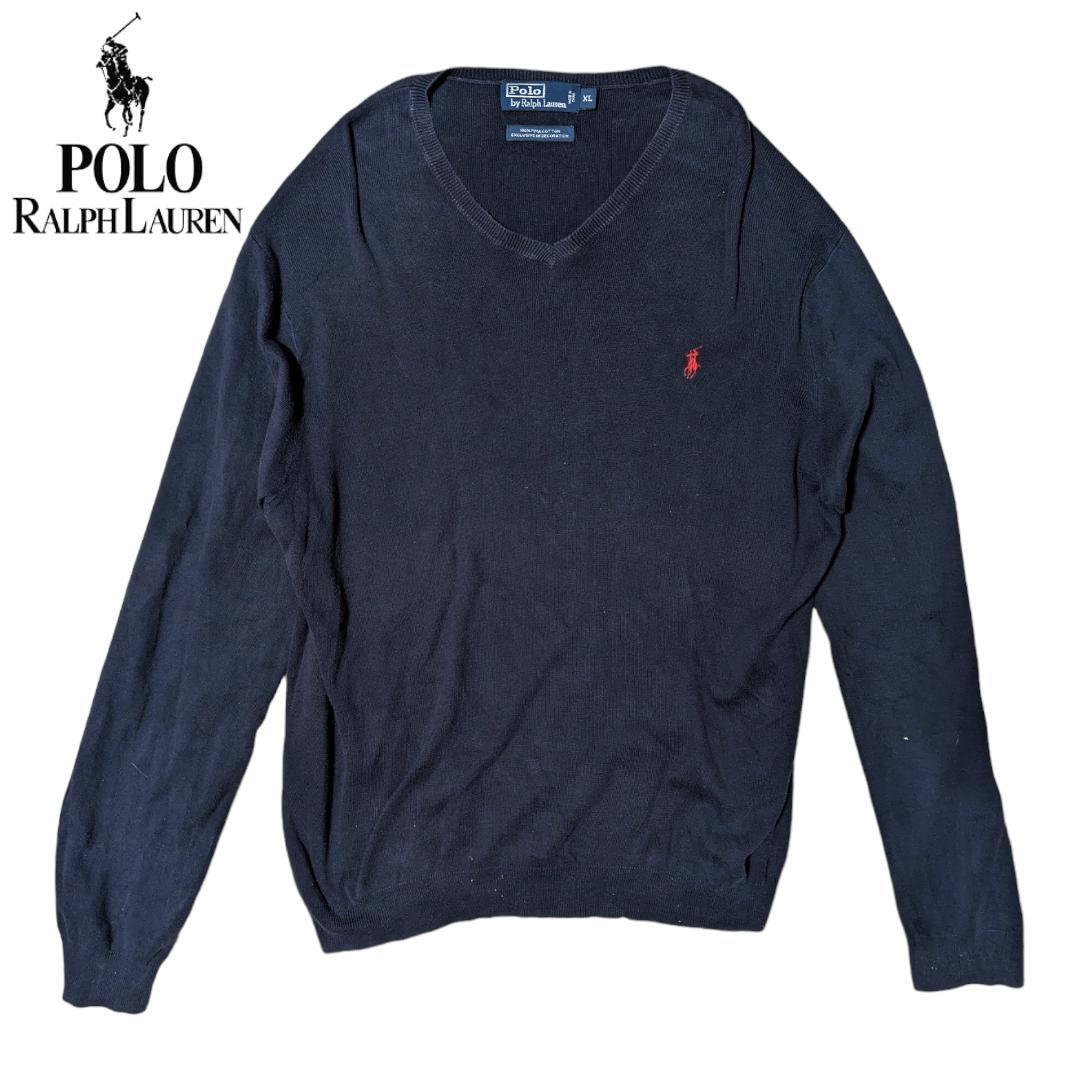 XL 海外企画 90s Vintage Polo by Ralph Lauren ネイビー スーピマコットン ニットセーター ポロバイラルフローレン