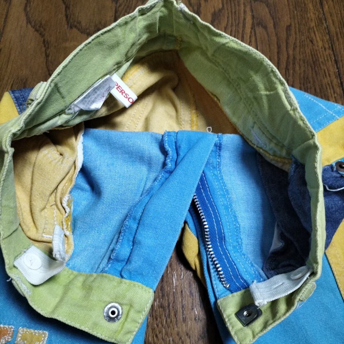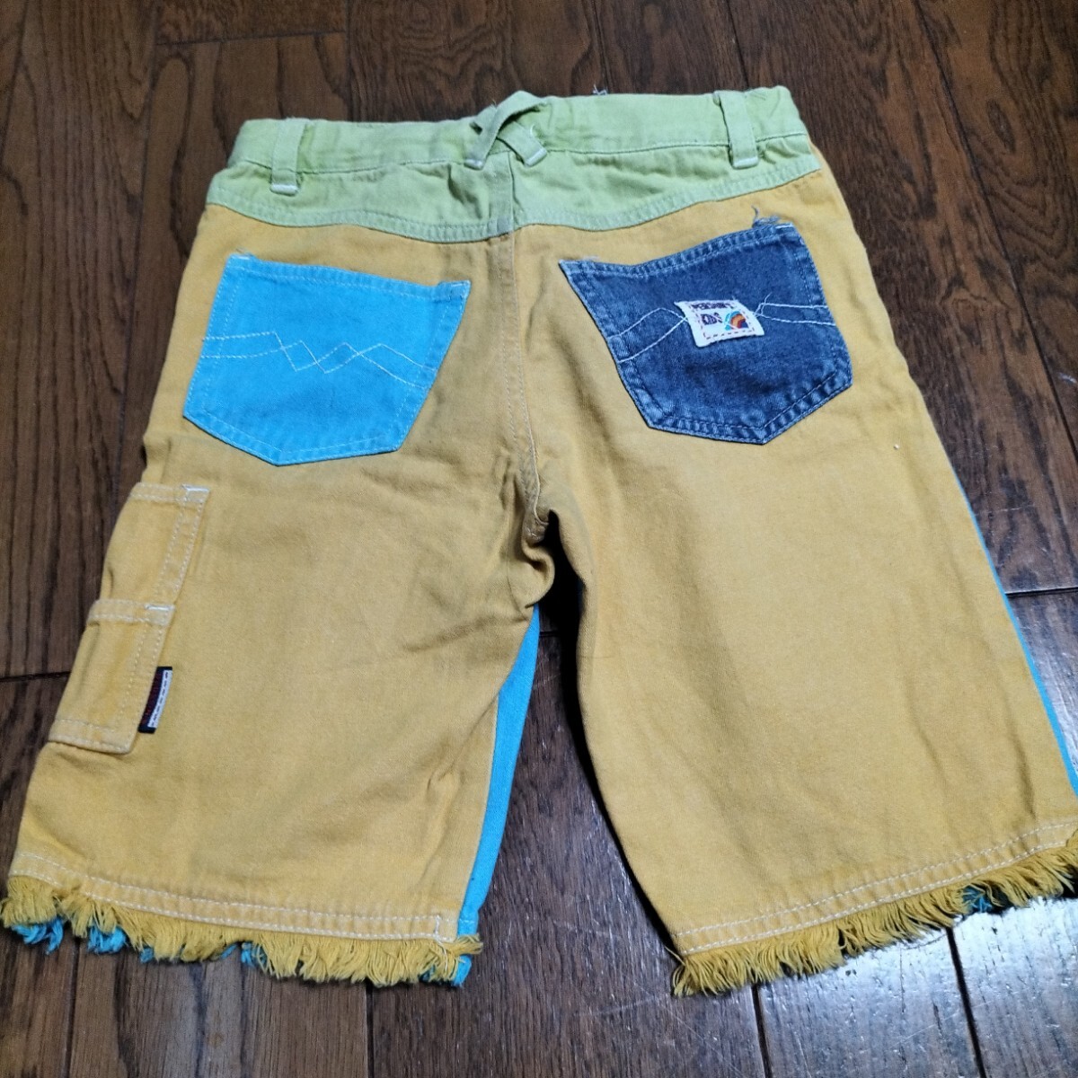 カラフルなパッチワークデザインの110サイズの半ズボン。