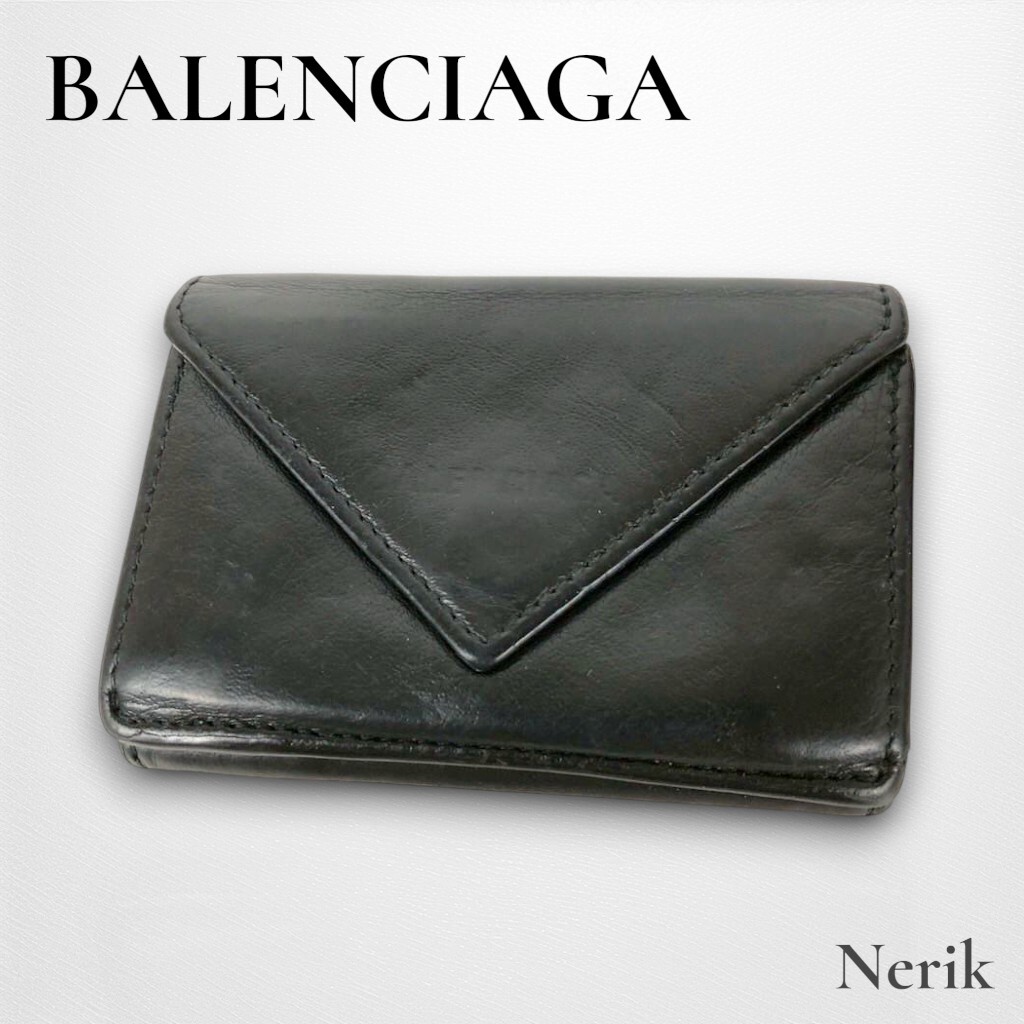 即購入歓迎!こちらは BALENCIAGA バレンシアガ コンパクト財布 三つ折り ペーパーミニウォレット ブラック レディース ブランド になります。