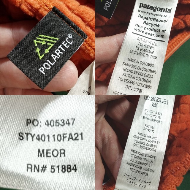 ▲パタゴニア 2021 ポーラテック パワードライ フリース R1 プルオーバー ジップネック ダルオレンジ S(JP-M) 美品!!!▲