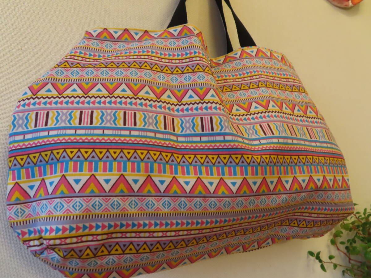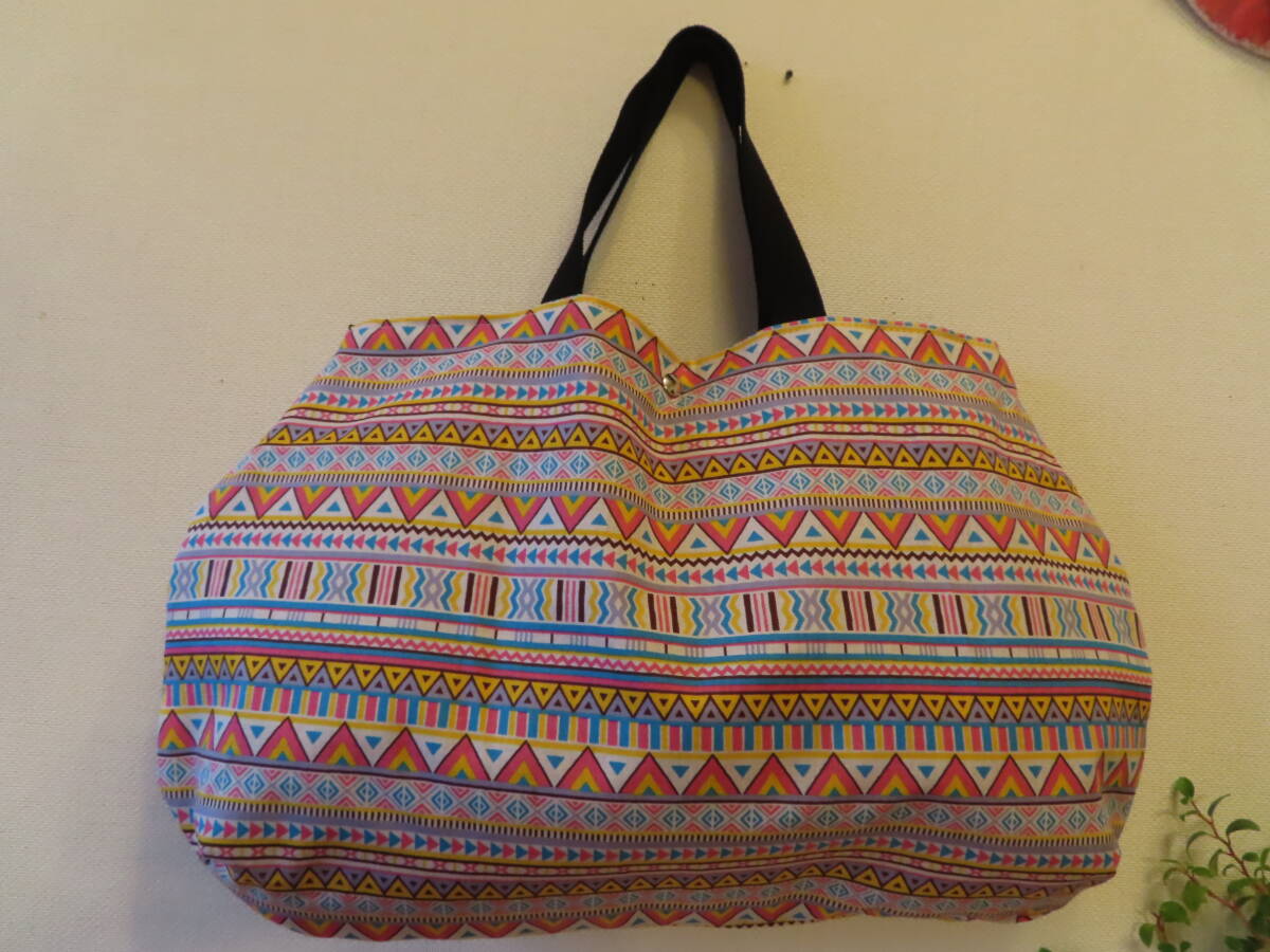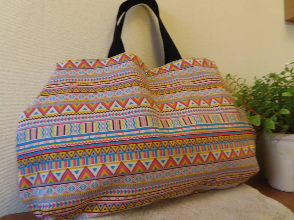 83 ハンドメイド ころんと丸い 大きい 手提げトートバッグ 内布 撥水加工 アフリカン プリント柄
