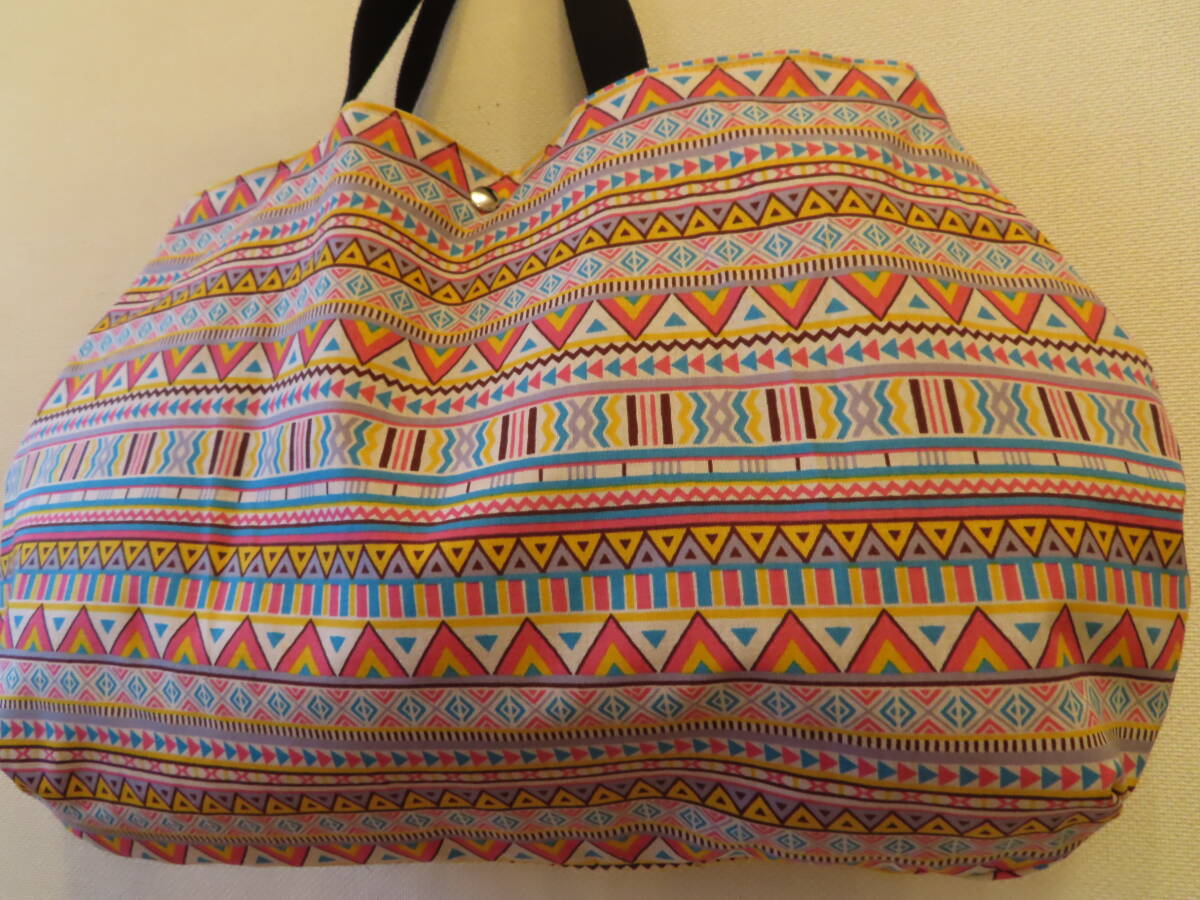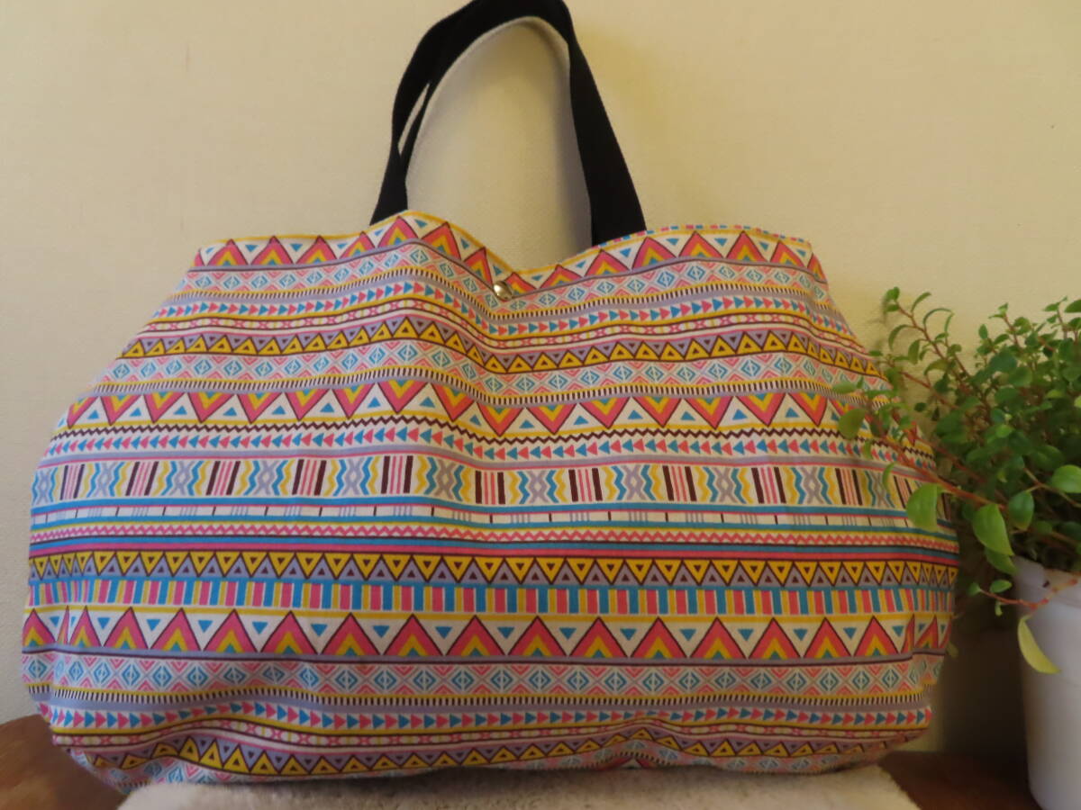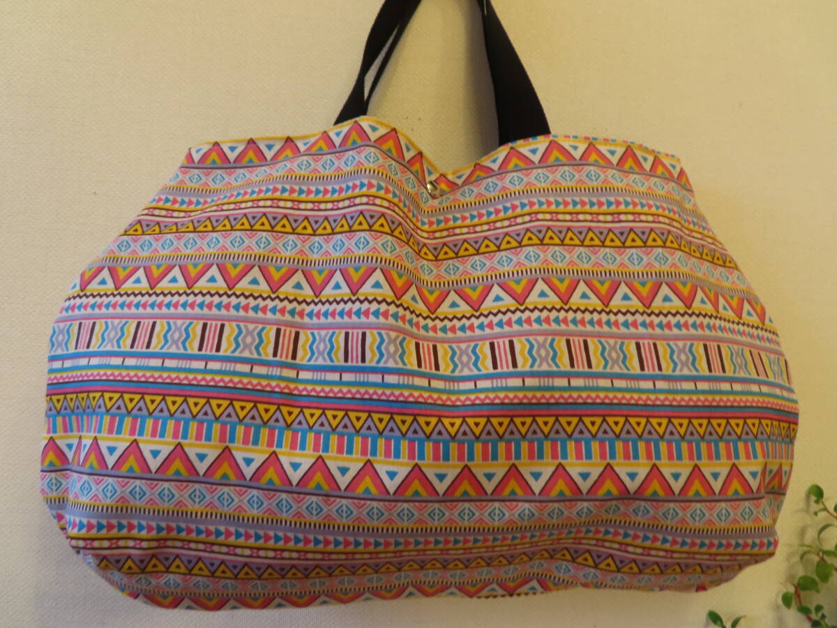83 ハンドメイド ころんと丸い 大きい 手提げトートバッグ 内布 撥水加工 アフリカン プリント柄