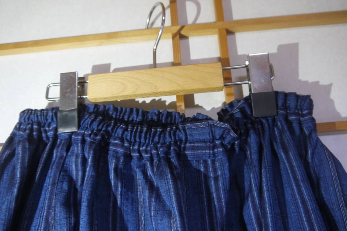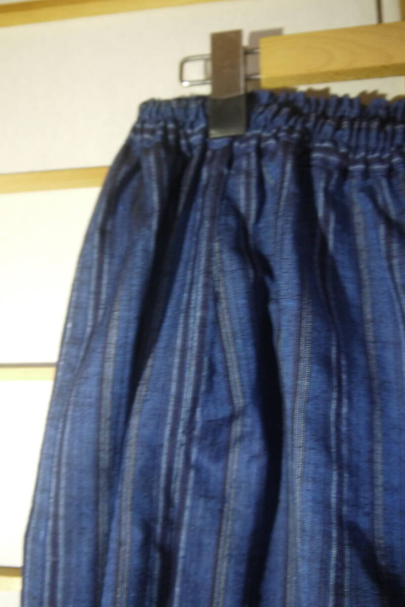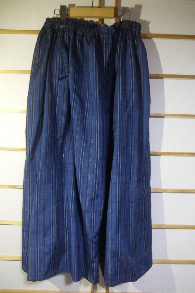 ★D&C着物リメイク・ワイドパンツ・絹・手織紬・藍間道縦縞 ★