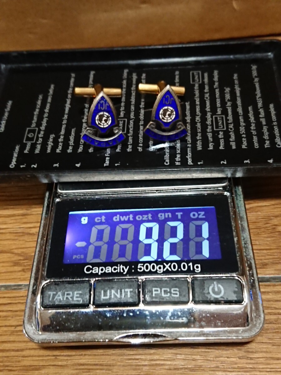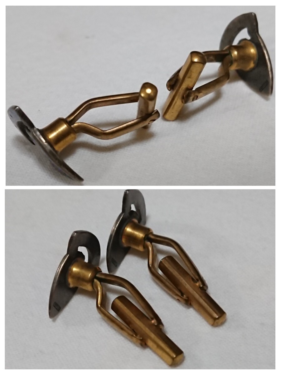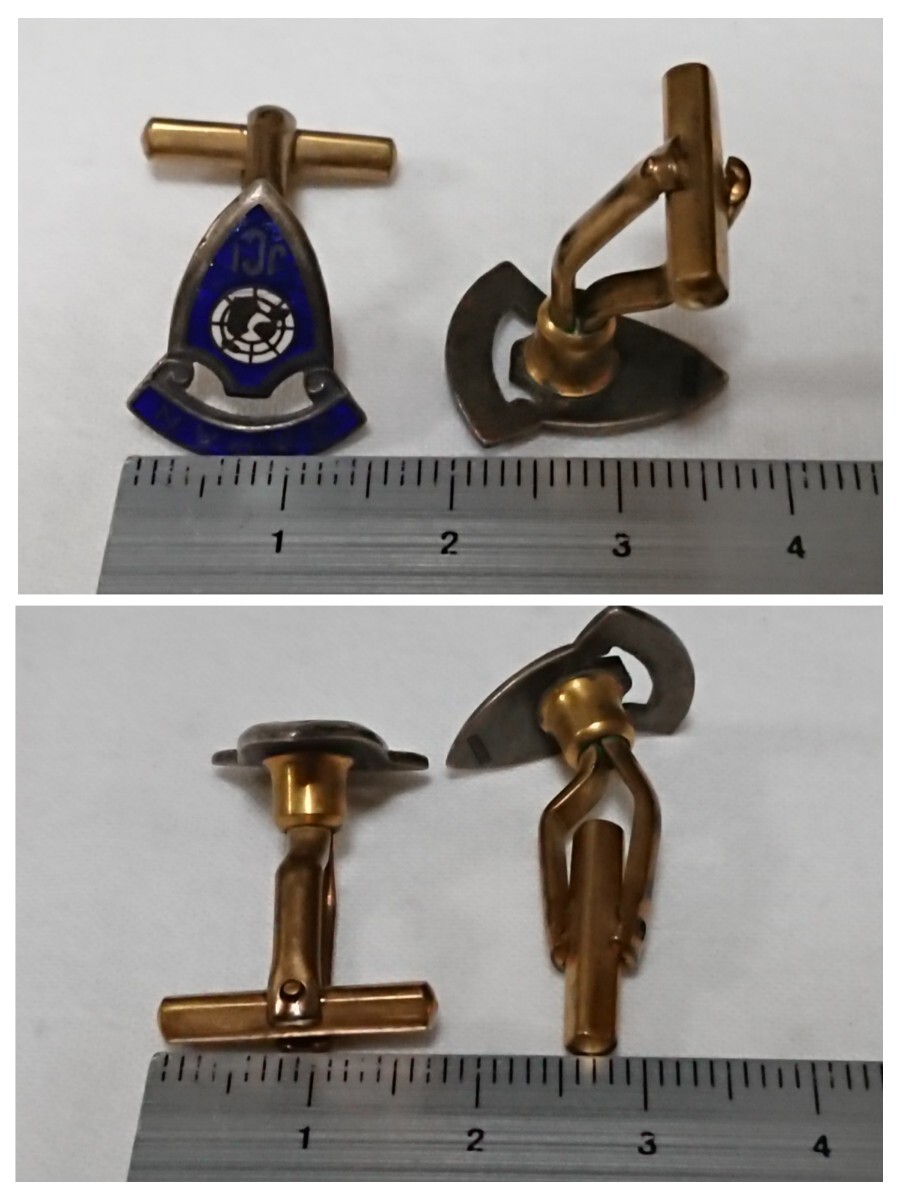 昭和期頃のカフスボタンでボックス付きです。【JAPAN JCI】‥(国際青年会議所(Junior Chamber International: JCI)の日本組織物かと思います。エナメル加工がされている裏側に【SILVER】刻印がみられますが留め部分側までシルバーかはわかりません。