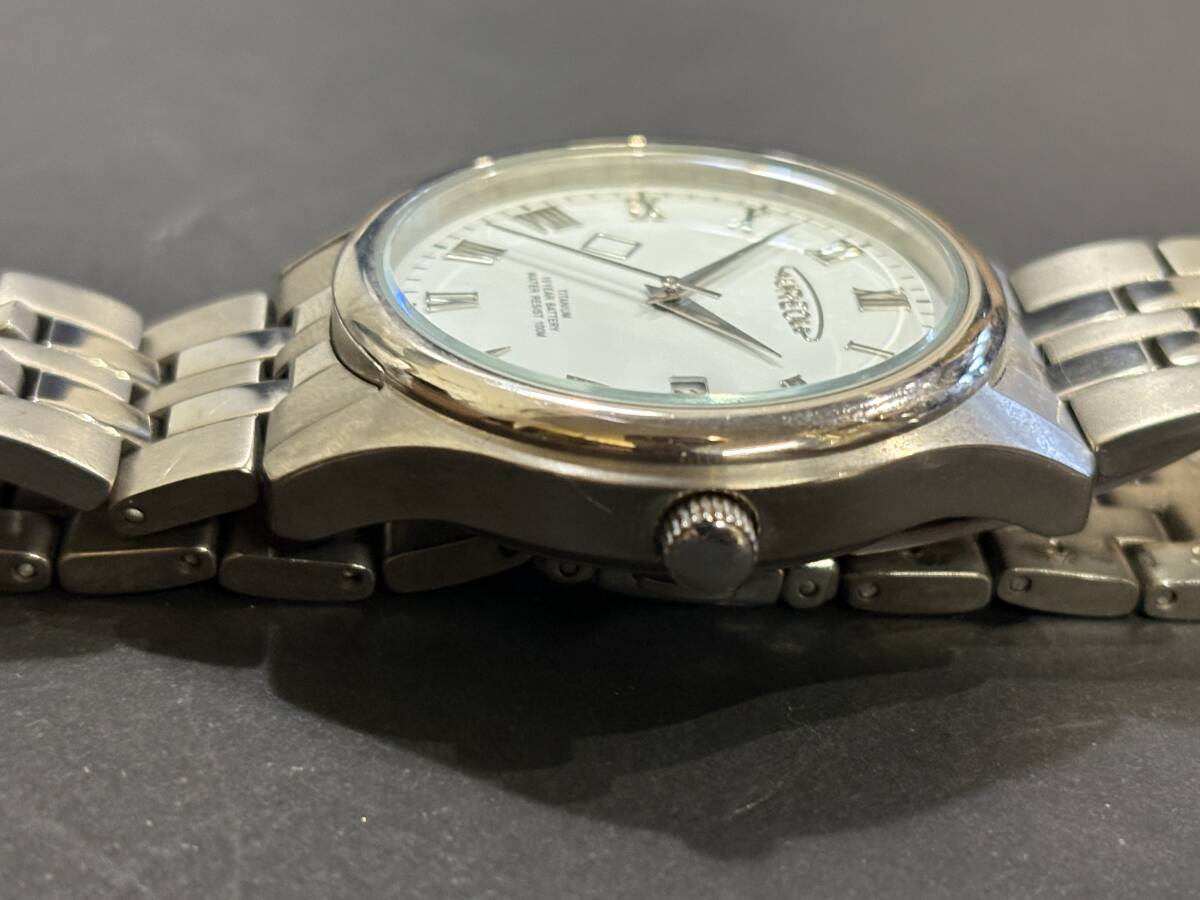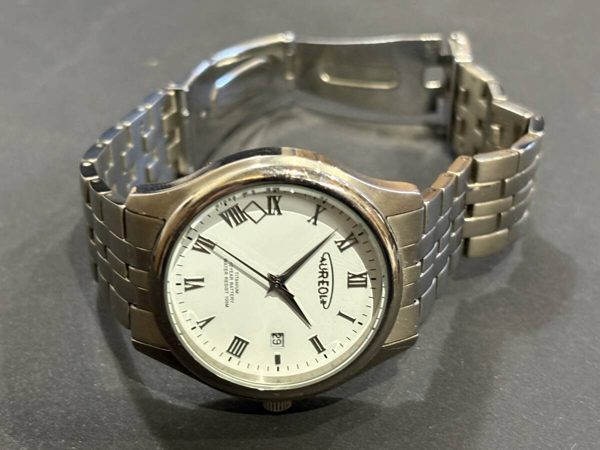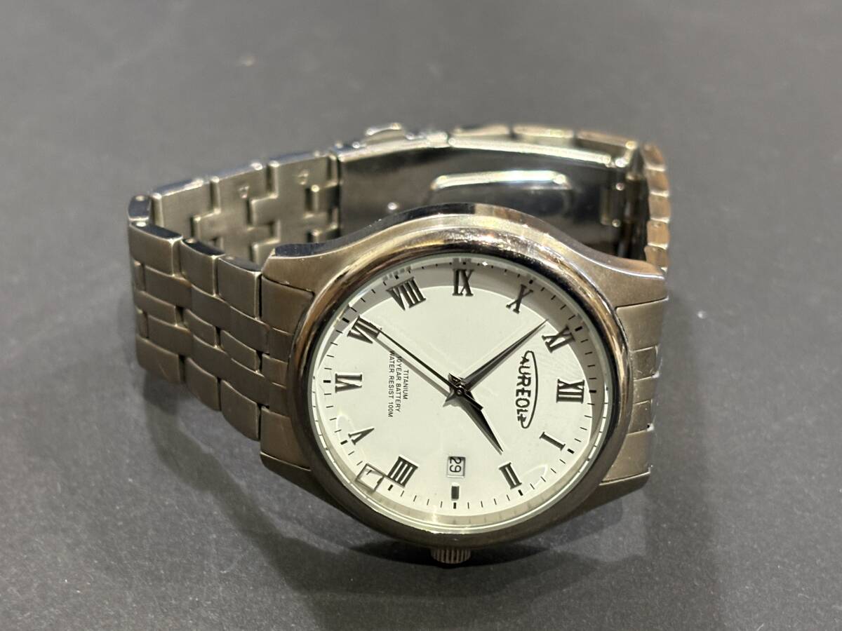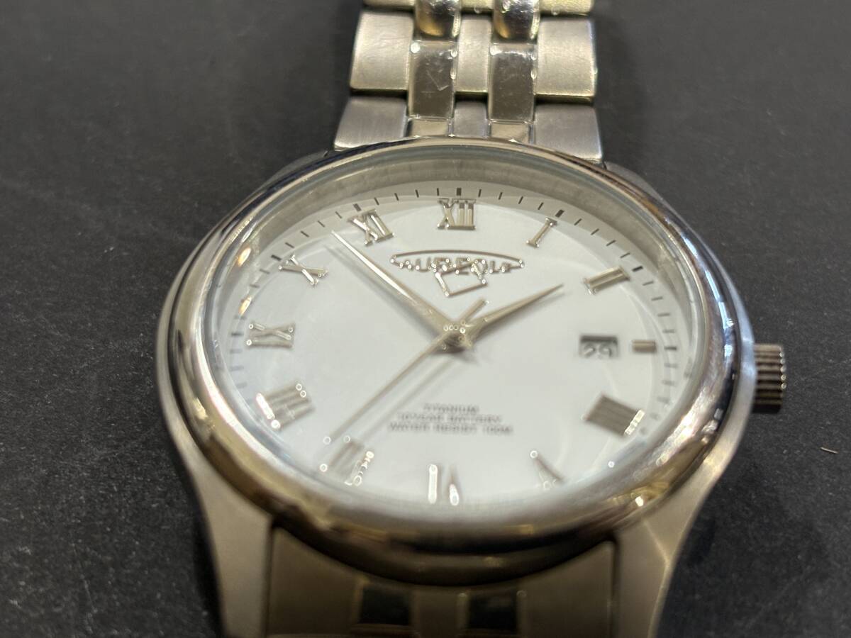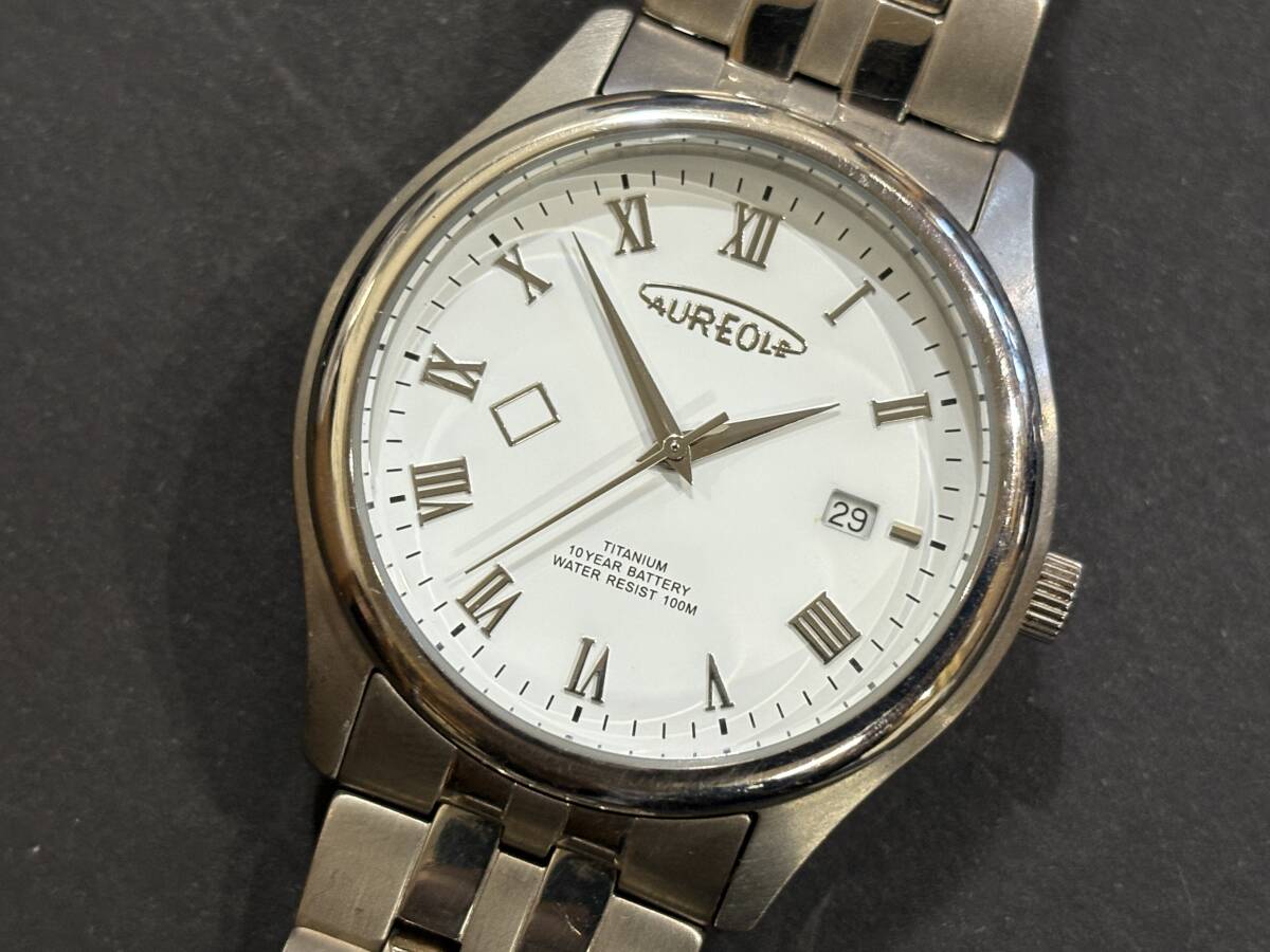 AUREOLE オレオール 24SW-483M デイト 100m防水 TITANIUM チタニウム 白文字盤 QZ クォーツ メンズ 腕時計 動作確認済 現状品