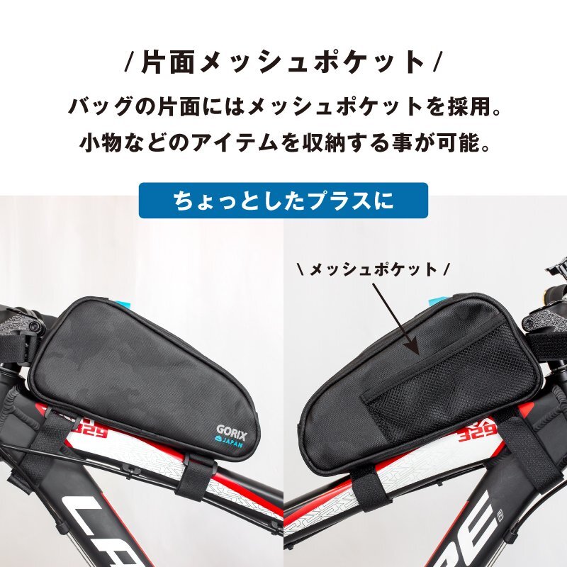 ロードバイク、クロスバイク、ミニベロ、MTB等に最適なフレームバッグです。 スマートフォンやチューブなどの工具、鍵、補給食などしっかり収納できます。 ブラックベースのカモ柄は目立ちすぎずシンプルでおしゃれに。 防水効果で急な雨も気になりません。 厚みがないので膝が干渉しにくくペダリングの邪魔になりにくいデザイン。 片側にメッシュポケット採用でちょっとした小物収納に最適。 [カモ柄デザイン] 目立ちすぎずさりげないブラックベースのカモ柄デザイン。 柄デザインでありながらシンプルに仕上がっています。 [片面メッシュポケット] バッグの片面にはメッシュポケットを採用。 小物などのちょっとしたアイテムを収納する事が可能でちょっとしたプラスにができる。 [防水機能] 防水性のあるメイン生地(600Dポリエステル生地IPX4)と防水ジッパーで確かな防水性を実現。 表面にはTPUコーティング加工。 (600D(デニール)リュックの底部に使われる事が多い程に分厚く強度がある) (TPUとは弾力性のある素材で、防水性に優れ汚れにも強い) (※ご注意:完全防水ではないため、土砂降りの雨天での使用や長時間水に浸かることは必ずお避けください。) [汚れに強い] TPUコーティング加工は汚れに強く水分が付着しても簡単に拭き取る事ができる。 汚れを落としやすい材質で掃除しやすくキレイを長い期間保ちします。 [容量1L] スマホや補給食や鍵、工具やチューブ、モバイルバッテリーなどの収納に最適。 長めなので携帯ポンプの収納も可能。 [見やすい] 中の生地がグリーンになっている事で中身のアイテムがみやすい! また中にメッシュポケットがあり小さいアイテムの収納に便利。 [邪魔にならない] 幅約5cmと厚みがないのでペダリング時やダンシング時に起こる脚の干渉を軽減。 膝に当たらないのでストレスなくペダリングする事が可能に。 商品内容自転車用トップチューブバッグ 材質600Dポリエステル, TPU防水加工コーティング, 210Dナイロン, 防水ファスナー 防水仕様高防水レベルIPX4 サイズ23×5×11cm(詳しくは商品画像に表記) 重量132g 容量約1L カラーカモ柄 ※完全防水ではないため、土砂降りの雨天での使用や長時間水に浸かることは必ずお避けください。 商品は入荷によりキズがある場合があります。 傷や細かい汚れが気になる方や神経質な方は入札をお控え下さい。 入荷時期により予告無く一部仕様変更する場合が有ります。 カラーはディスプレイ種類環境等により実物と異なって見える場合がございます。 |