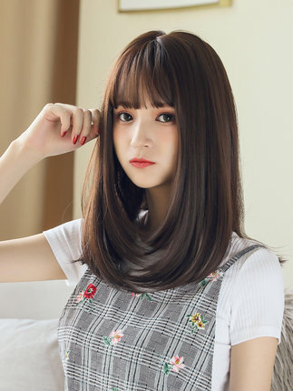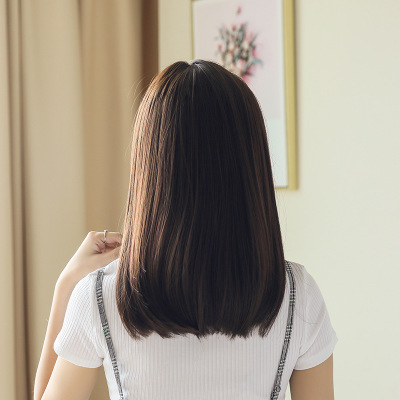 ウィッグ ミディアム セミロング 自然 医療用 耐熱 レディース ふんわり 高品質 軽い WIG ダークブラウン 小顔効果 かつら フルウィッグ