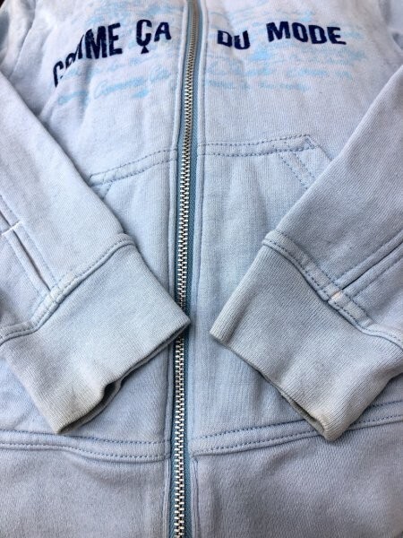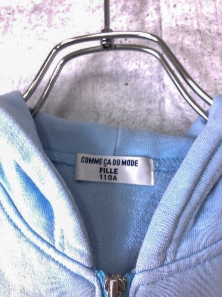 OMME CA DU MODE コムサデモード キッズ ロゴフロッキープリント ジップパーカー 日本製 110 水色 です。