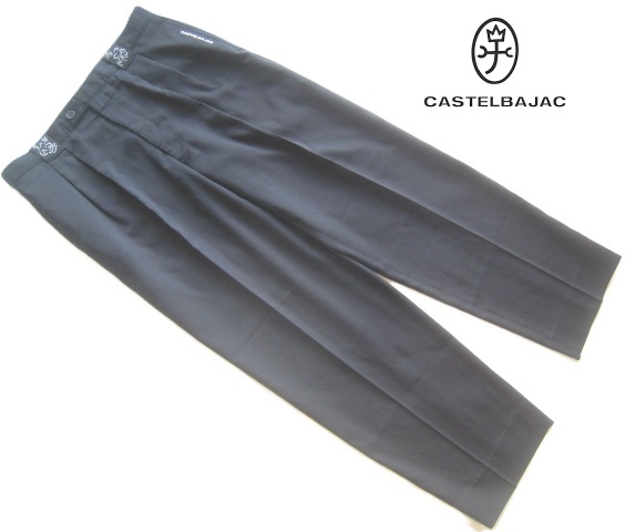 極上3.2万!! CASTELBAJAC ロゴ刺繍 2プリーツ ポリエステルスラックス・パンツ