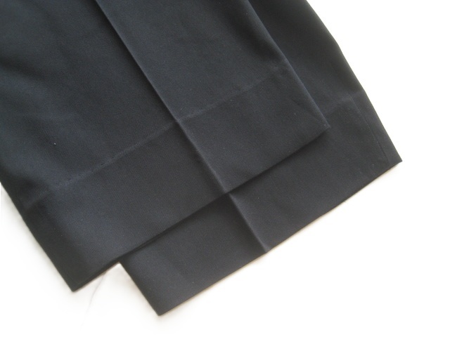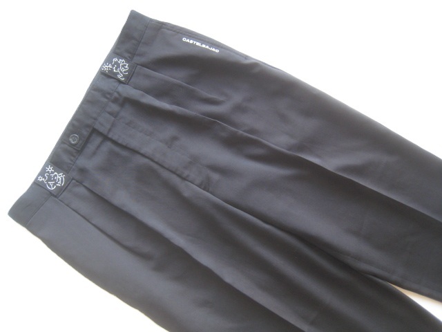 極上3.2万!!カステルバジャック CASTELBAJAC*ロゴ刺繍 2プリーツ ポリエステルスラックス・パンツ W90 実寸XL 黒 RAIKA ライカ 日本製