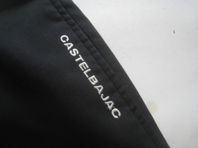 RAIKA傘下の高級紳士ブランド カステルバジャックのロゴ刺繍 2プリーツ ポリエステルスラックス・パンツです。人気のストレートシルエット、2プリーツ、フロントはジップフライ、ポケットは4つございます。