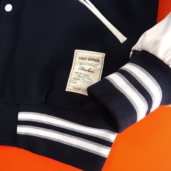 新品 未使用 紙タグあり LLサイズ チェスト104~112 身長175~185 ※写真は別サイズを使用している場合がございます※ ※商品に記載されたサイズ・寸法です※ ラグランのため肩幅計測不可 ゆき丈95cm(首裏~袖先) 身幅66cm 袖下丈56cm(脇下~袖先) 着丈71.5cm 身頃:ポリエステル100% 袖:合成皮革 リブ部分:ポリエステル100% 裏地 袖:ポリエステル100% 身頃:綿100% 中綿:ポリエステル100% ネイビー×ホワイト |