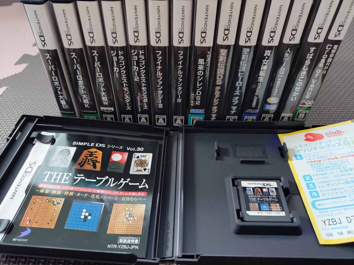 DSソフトまとめ売りです。 動作確認済みです。 すべて箱、説明書付きです。 カバーが無いのもは、THEテーブルゲームです。