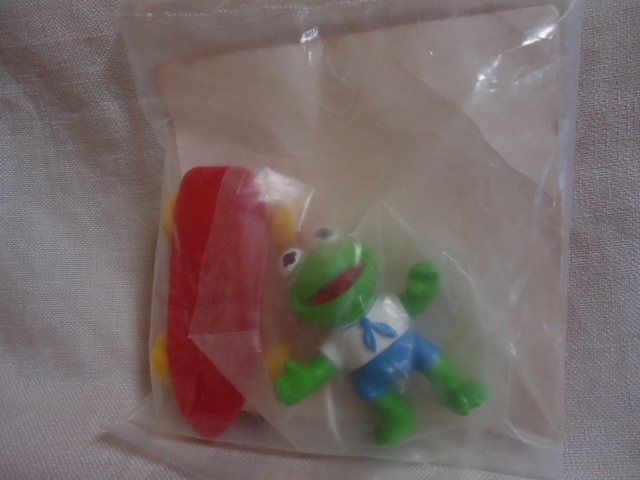 米国にて、購入しました。1986年製。米国マクドナルドで、出たハッピーミールトイの4点セットの1点新品未開封物です。プラスチック・ゴム製。タイヤ、動きます。サイズは、縦約7センチ・カーミットの横約4.8センチ・スケボーの長さ約7センチです。24時間以内に、お手続き入力後、期限内にかんたん決済、出来きる方のみ、ご入札をお願い致します。この商品は、1点物です。 2512 ※※発送方法・送料は、特定記録付き定形外郵便(追跡可能・補償無し)ですと、500円又は、レターパックプラス郵便(追跡可能・手渡し配達・補償無し)ですと、600円又は、簡易書留郵便(追跡可能・手渡し配達・補償有り)ですと、640円です。※※ ☆★★★★★☆送料は、変わりますが、何点でも、同梱包可能です。数点落札されましたら、まとめて取引を、選択お願いします。☆★★★★★☆