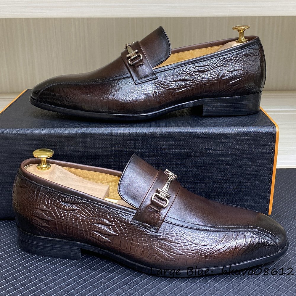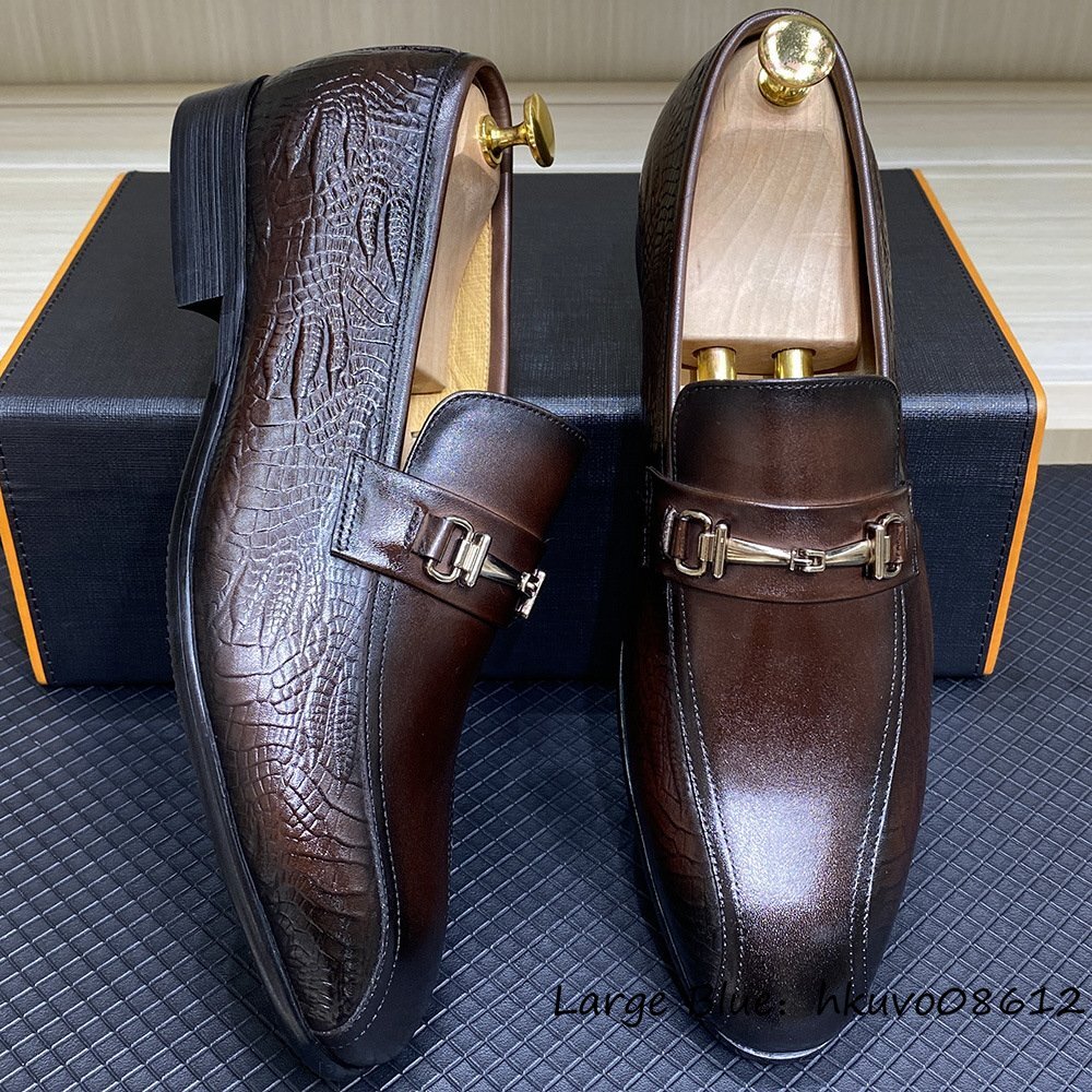 超希少◆定価11万 レザーシューズ メンズ 本革 ビジネスシューズ 職人手作り ビットローファー 紳士靴 高級牛革 冠婚葬祭 珈琲色 24.5cm