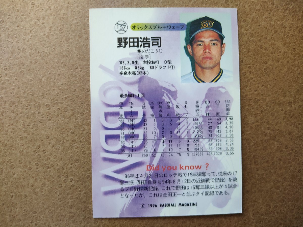野田浩司 オリックス・ブルーウェーブ BBM'96