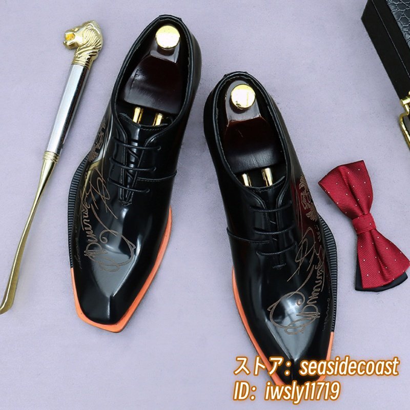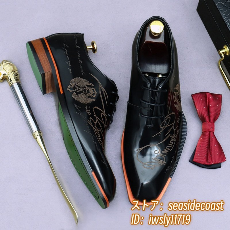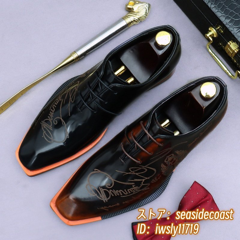 最高級◆定価11万 メンズ レザーシューズ 本革 ビジネスシューズ 革靴 フォーマル 職人手塗仕上げ 牛革 紳士靴 手作り新品 ブラック 25.0cm