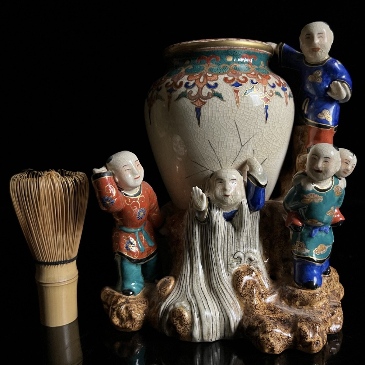 タイトルに茶筅付、皿立付、兜立付、刀掛付とない場合は、写真に写っていても付属しません。