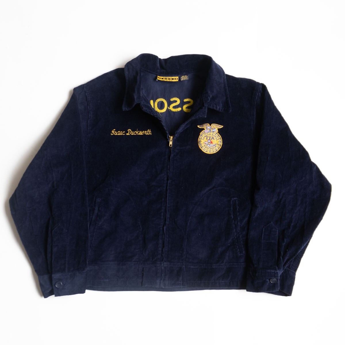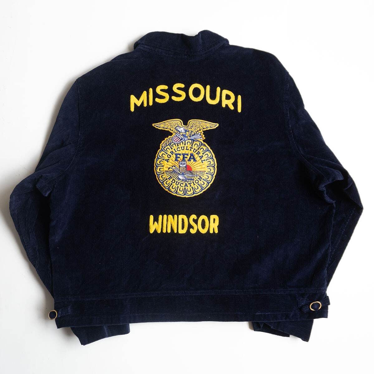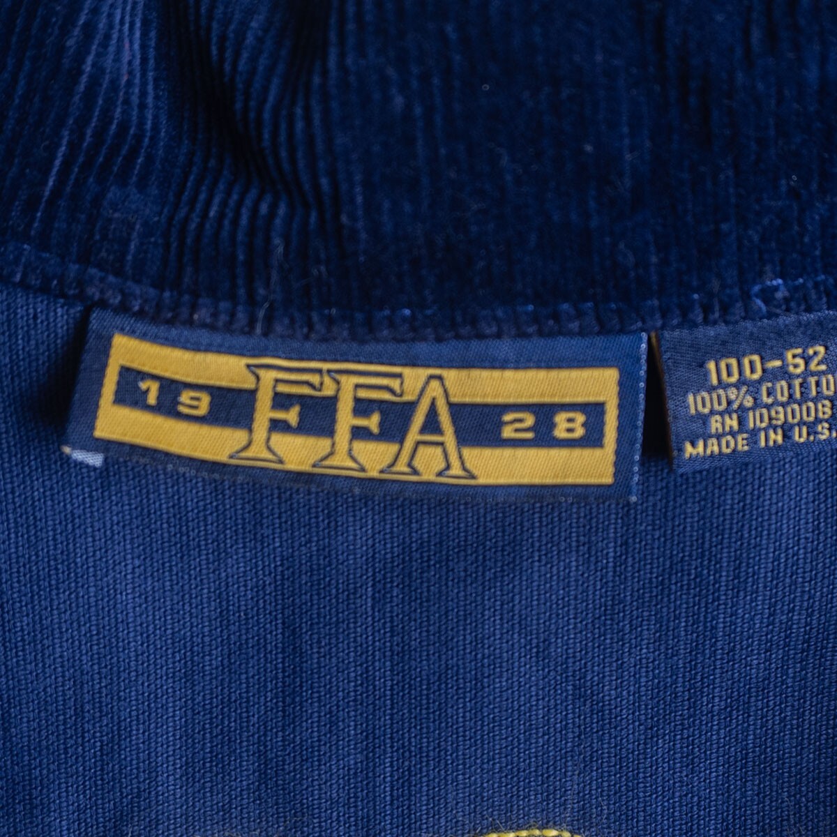 FFAとはFuture Farmars of Americaの頭文字をとった略称でアメリカ合衆国学校農業クラブ連盟のことを指します、『みんなでアメリカの農業の未来を考えていきましょう』という意味になります。その団体のユニフォームとして使用されていたのがこのFFAジャケットです。カラーは紺をベースに前後にはFFAのワッペン後ろにはワッペンの上に各州のチェーンステッチが入っています。お探しの方や気になる方は是非。