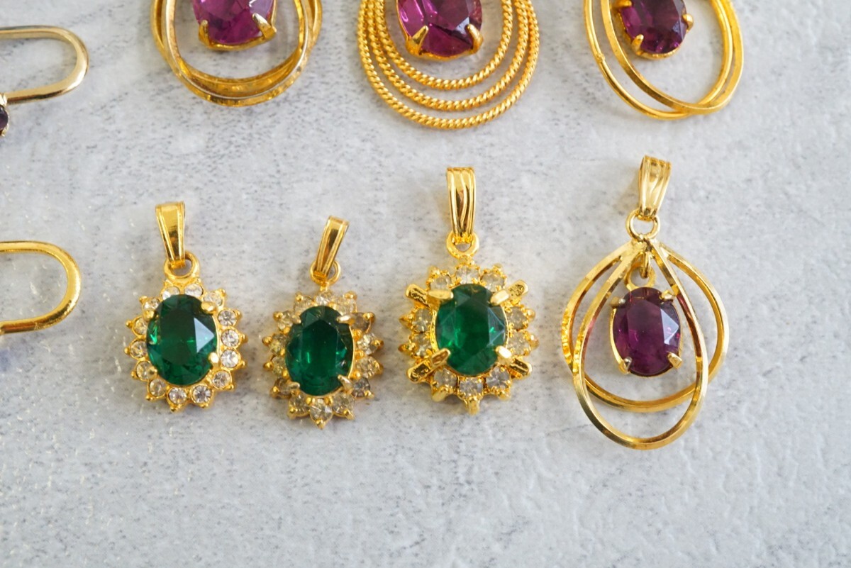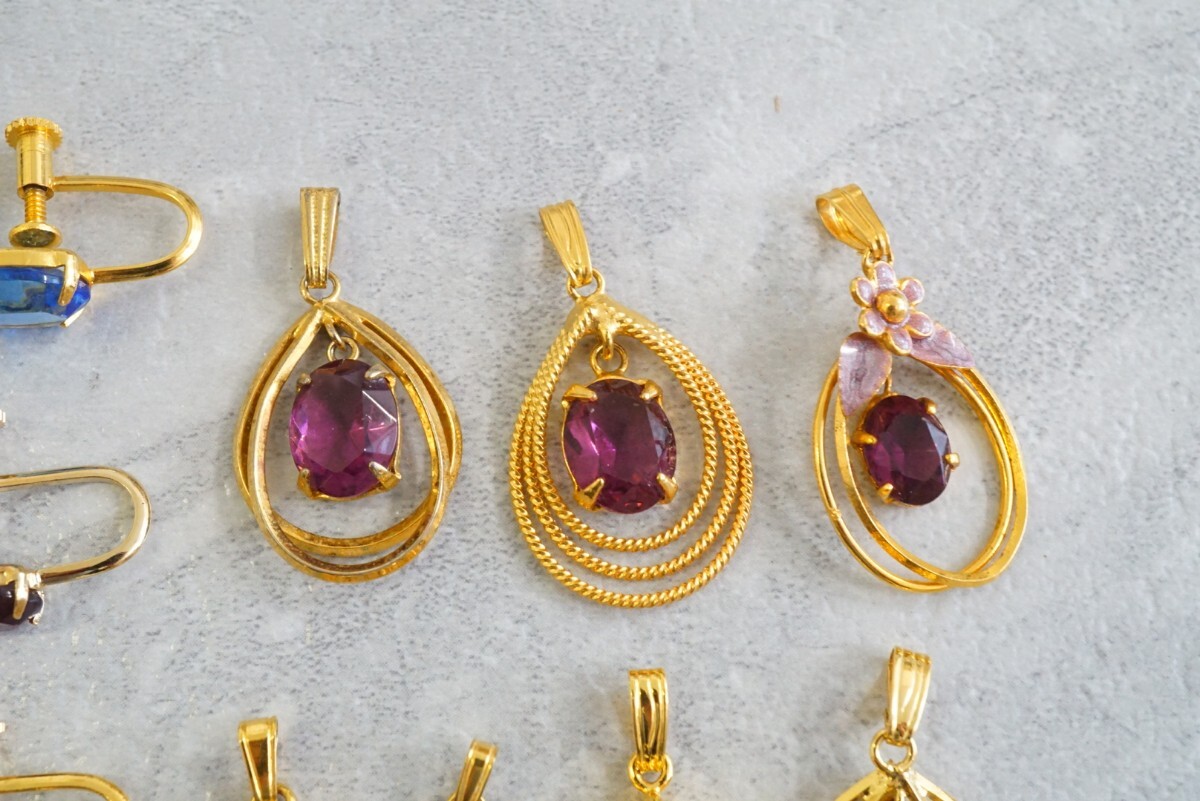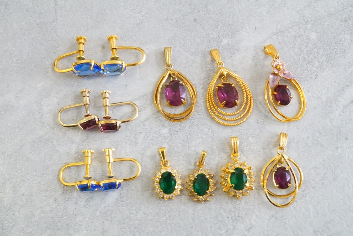 B691 色ガラス ゴールドカラー ネックレス ペンダント イヤリング 10点 ヴィンテージ アクセサリー 大量 まとめて おまとめ まとめ売り