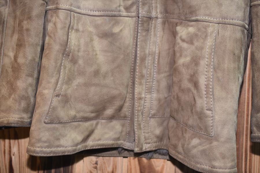 ★イタリア直輸入★良質 シープスキンムートン レザージャケット コート XL (SP-039)  メンズ ユーロ古着