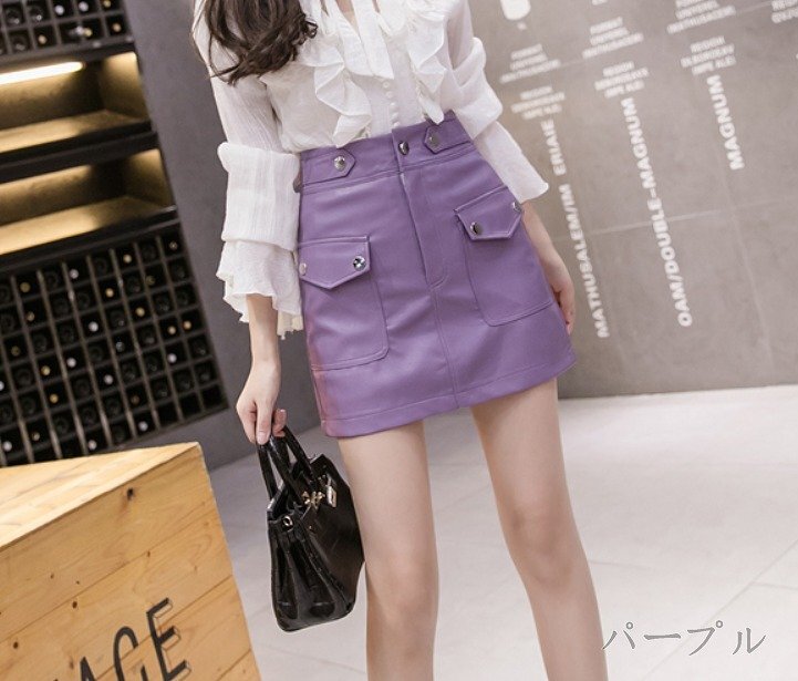 ミニスカート ショートスカート ボトムス タイト シンプル カジュアル かわいい レディース L パープル