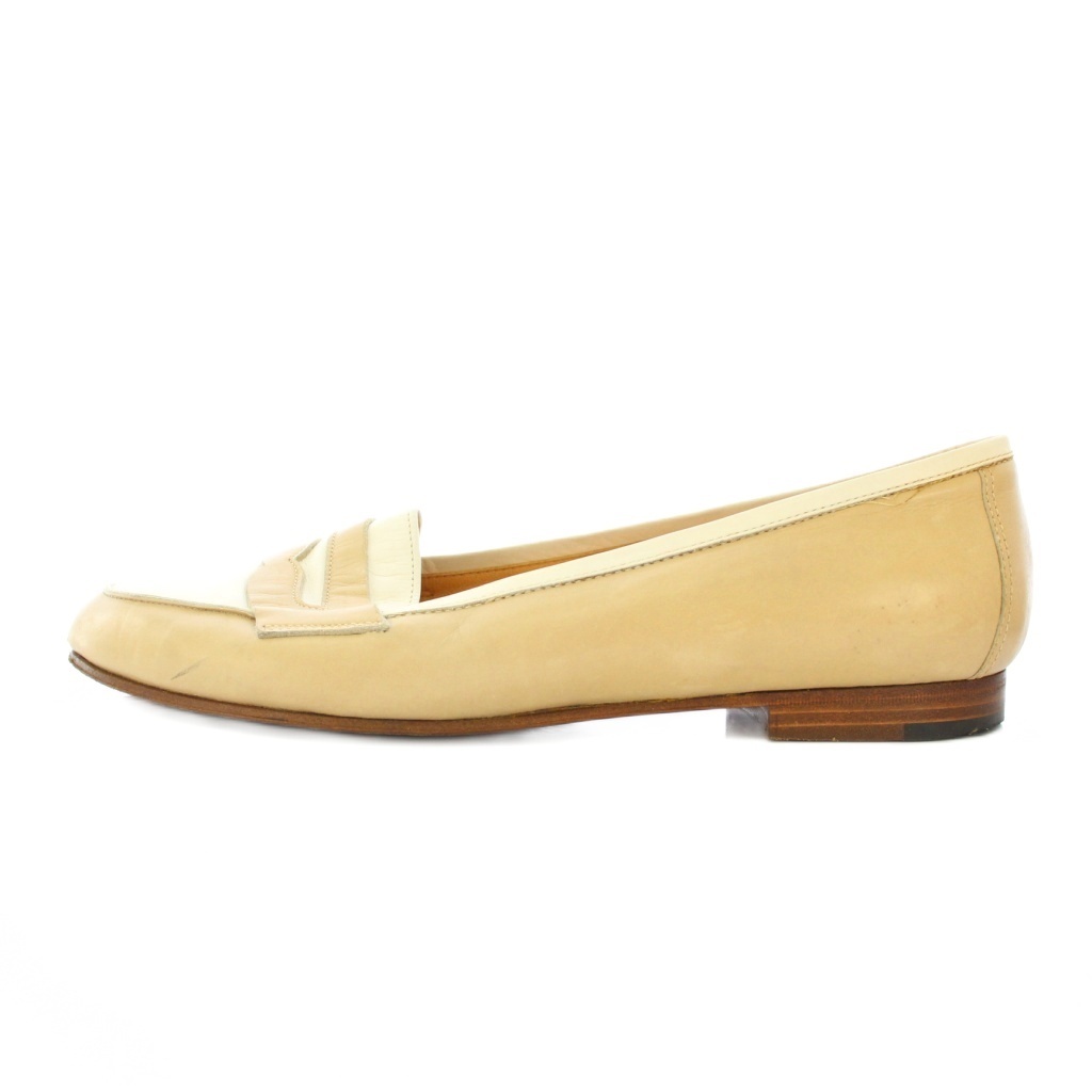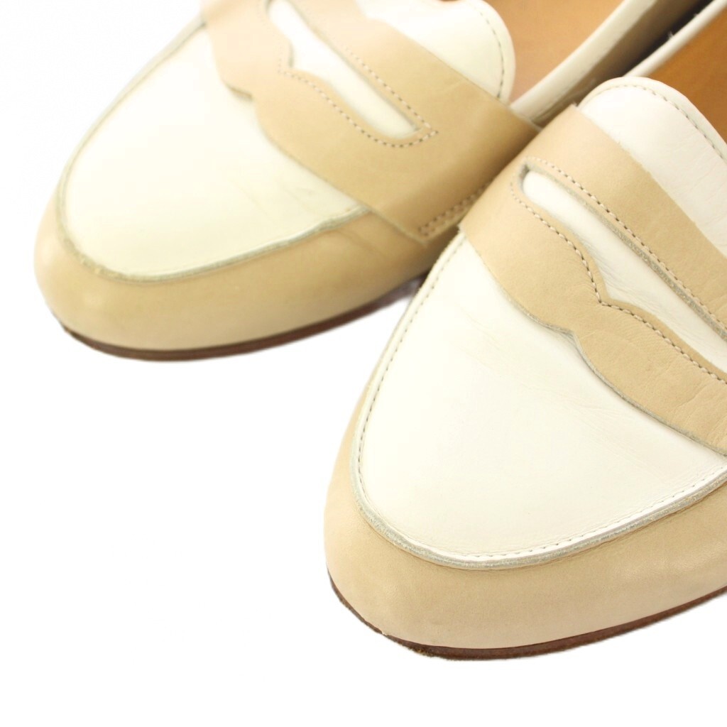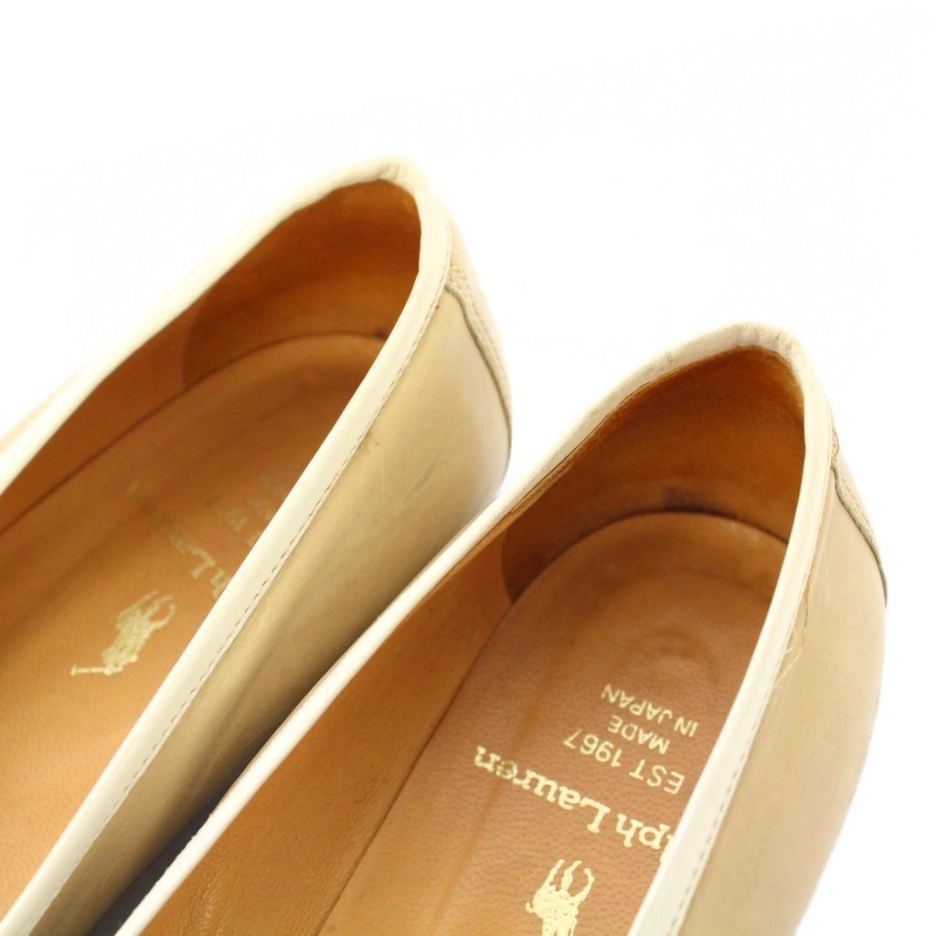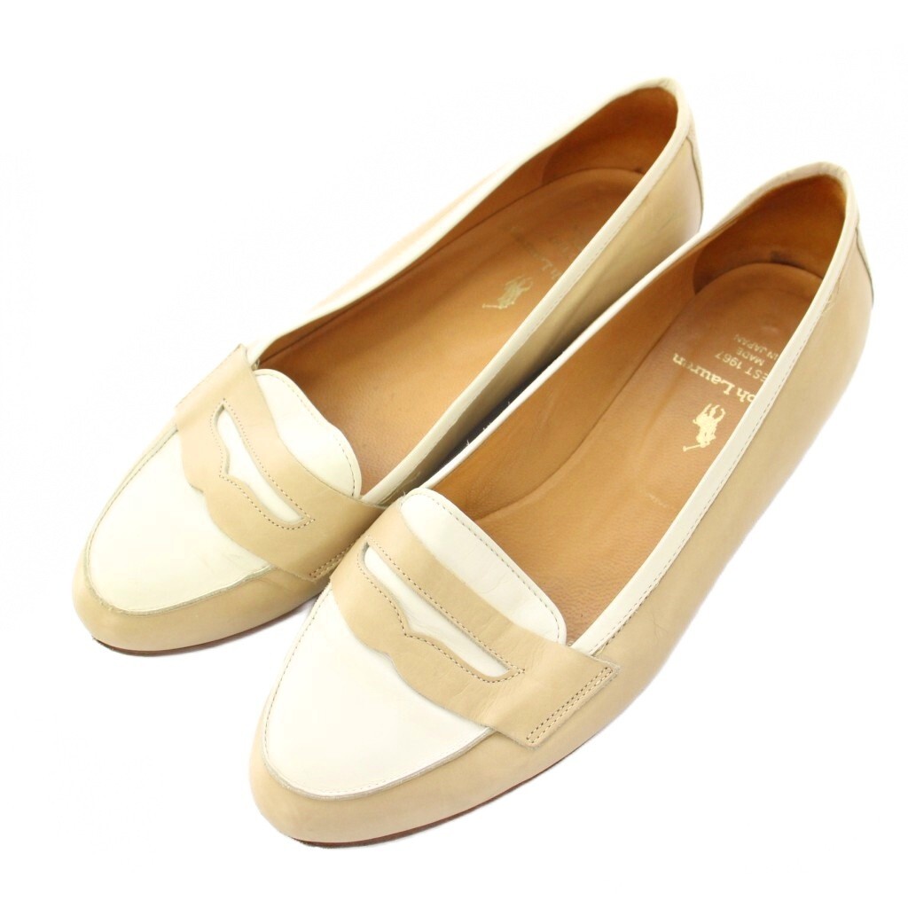 ラルフローレン RALPH LAUREN コインローファー パンプス ラウンドトゥ ローヒール バイカラー 24cm ベージュ 白 ホワイト