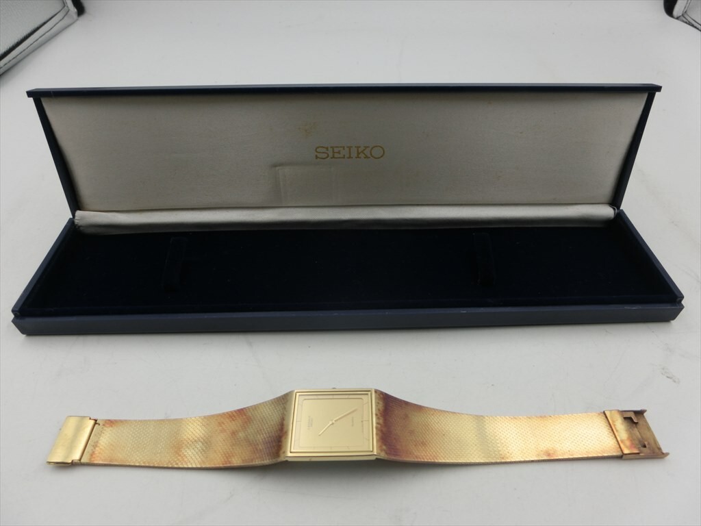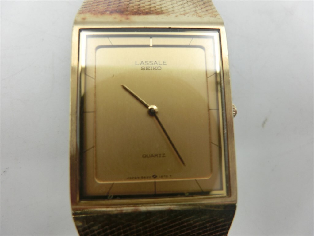T【4x-48】【60サイズ】▲SEIKO セイコー ラサール/クオーツ スクエア ゴールド文字盤 腕時計 8420-6869/撮影時動作OK/※錆有