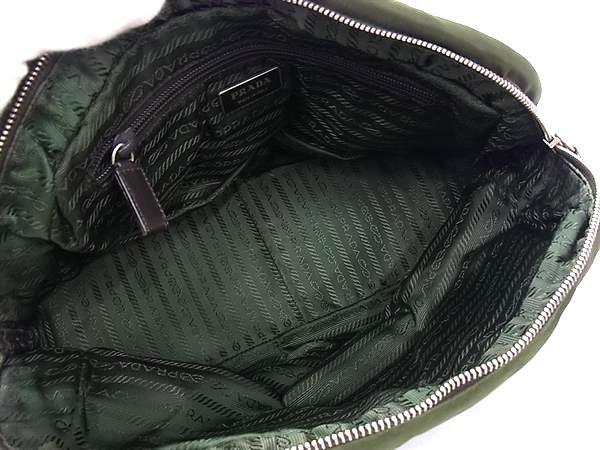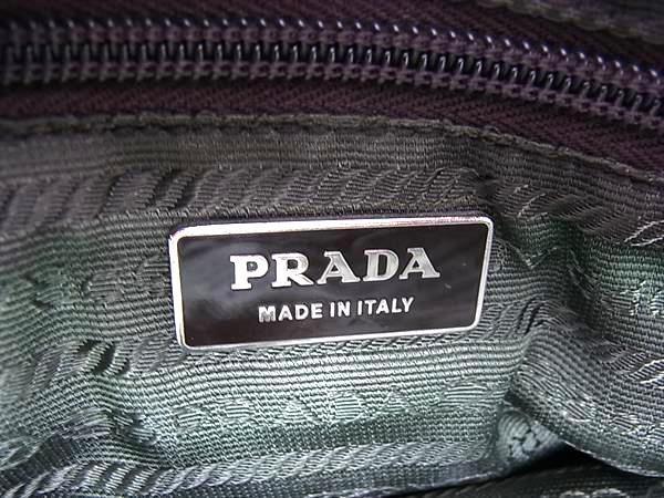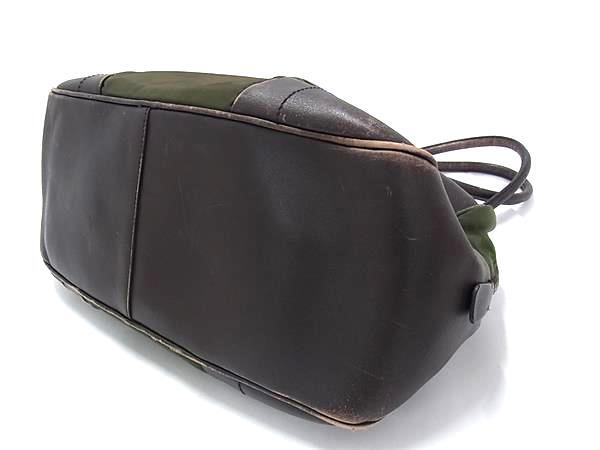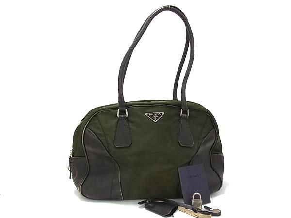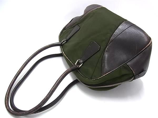 1円 PRADA プラダ テスートナイロン×レザー ハンドバッグ トート ショルダー レディース グリーン系×ブラウン系 FN6786