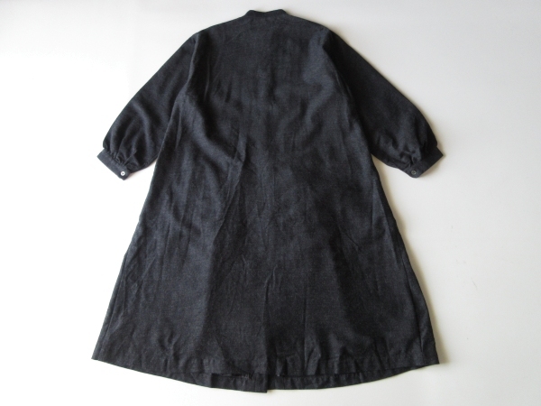 コットンハウスアヤのワンピース。温かみのあるウールコットン生地を使用し。製品洗いで風合い良く仕上げております。バンドカラーのデザイン。フロントに入れたタックがポイントです。上質な素材使いと綺麗なシルエットで、様々なコーディネートにお使い頂ける一着です。