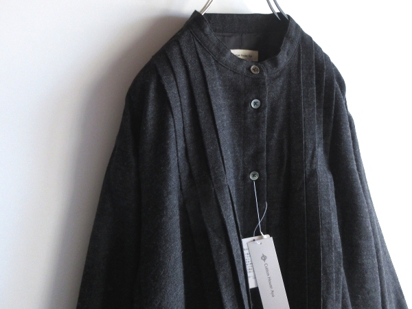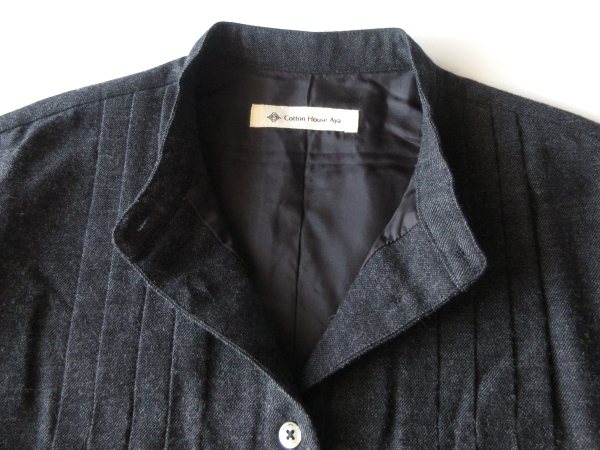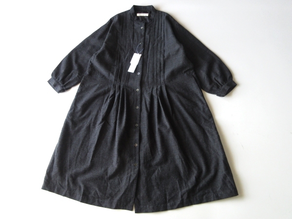 新品タグ付 Cotton House Aya コットンハウスアヤ 製品洗い ウールコットン ピンタック ワンピース M チャコール 日本製 定価31900円