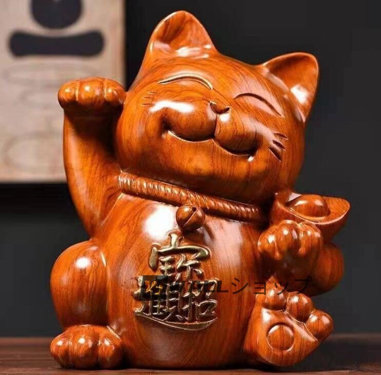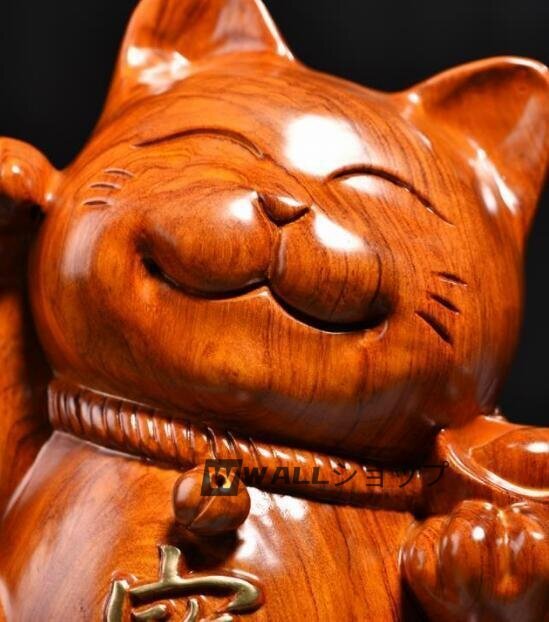 人気新品★ 室内芸術★ 新作の花梨木彫 可愛い招き猫 玄関、客間の置物 招財