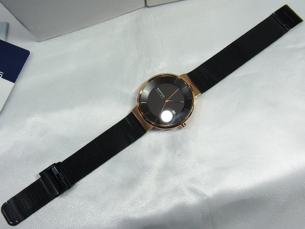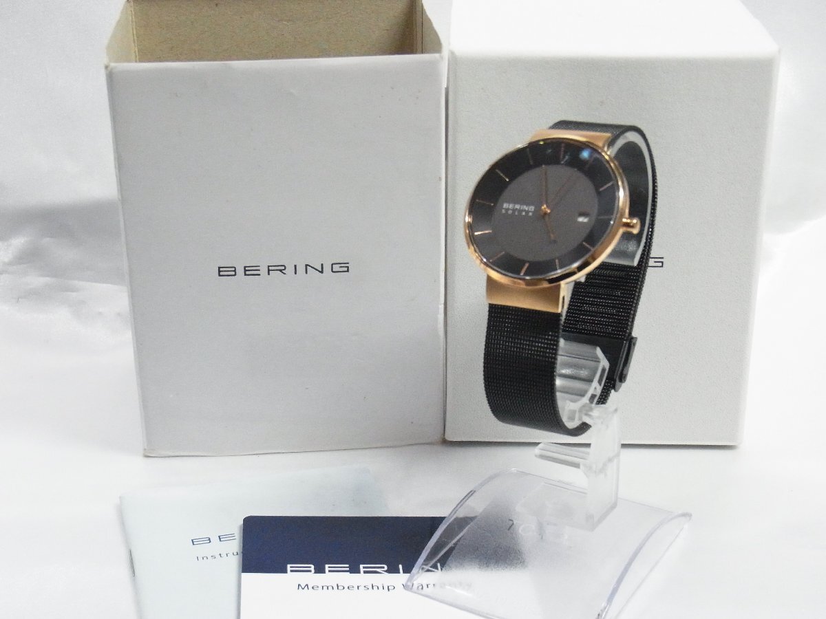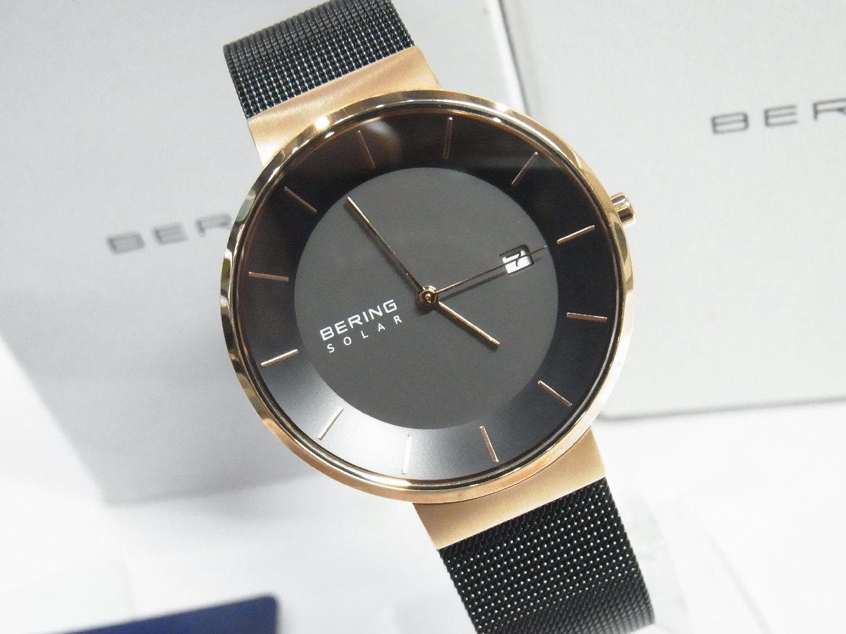 1円~【稼働・箱】ベーリング BERING ソーラー 14639-166 メンズ 腕時計 クオーツ ソーラー 3針 デイト ラウンド SSxGP 本体カッパー 文字盤ブラック系 純正ベルト | |