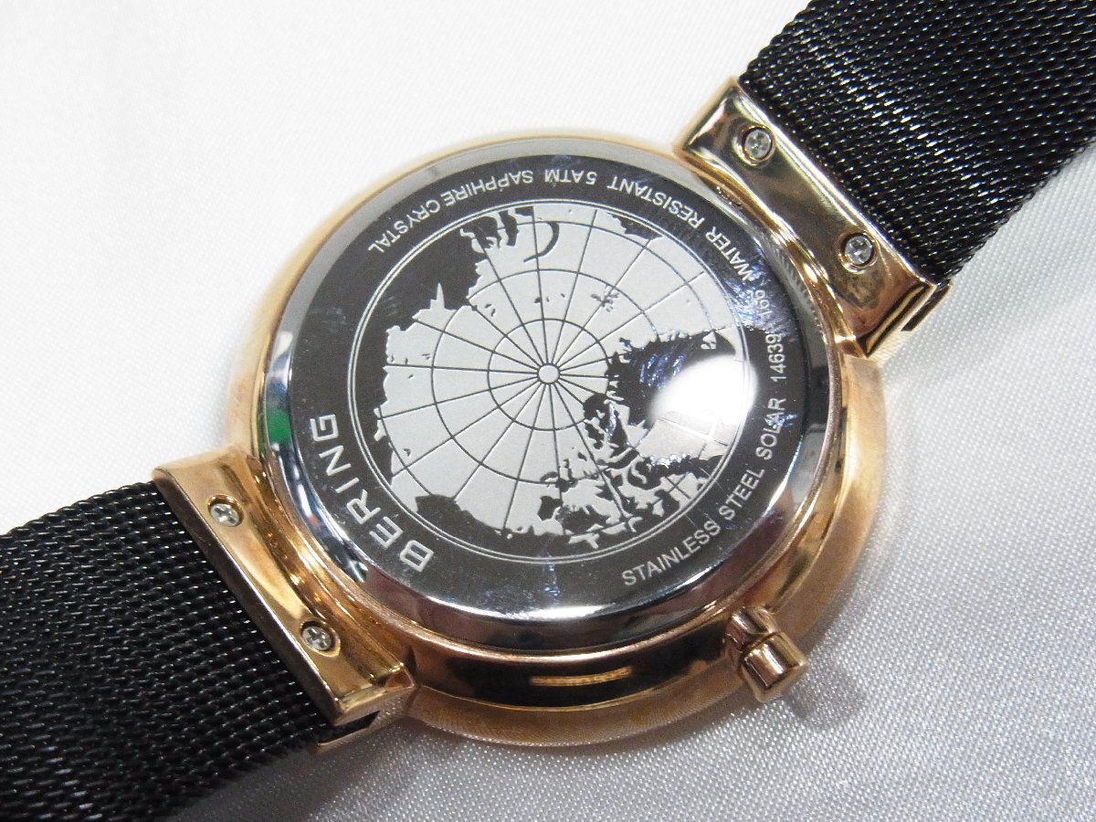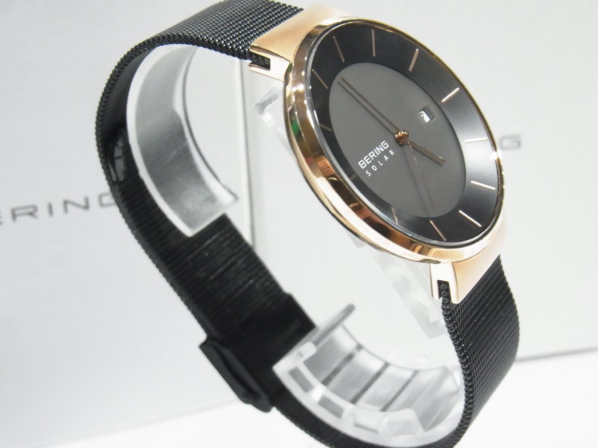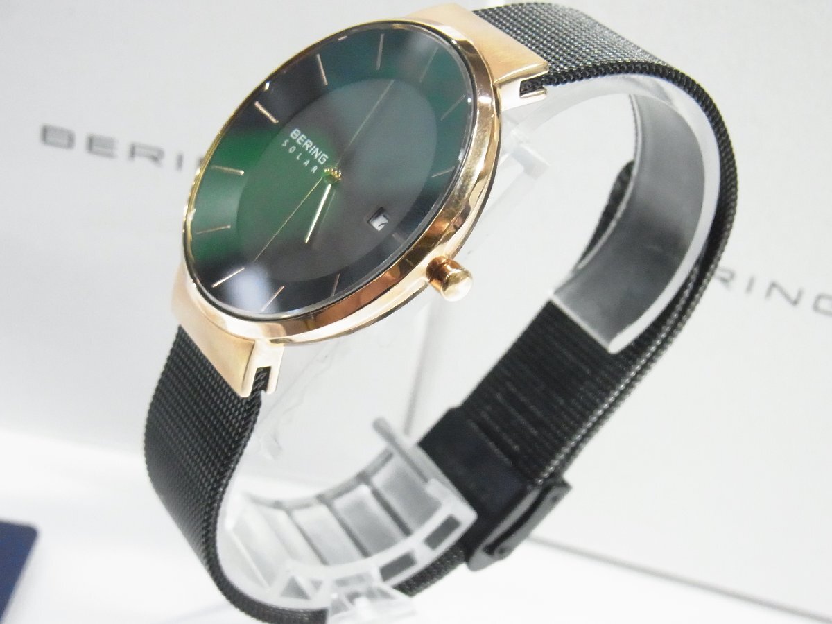 1円~【稼働・箱】ベーリング BERING ソーラー 14639-166 メンズ 腕時計 クオーツ ソーラー 3針 デイト ラウンド SSxGP 本体カッパー 文字盤ブラック系 純正ベルト | |