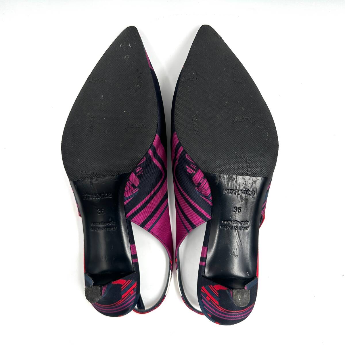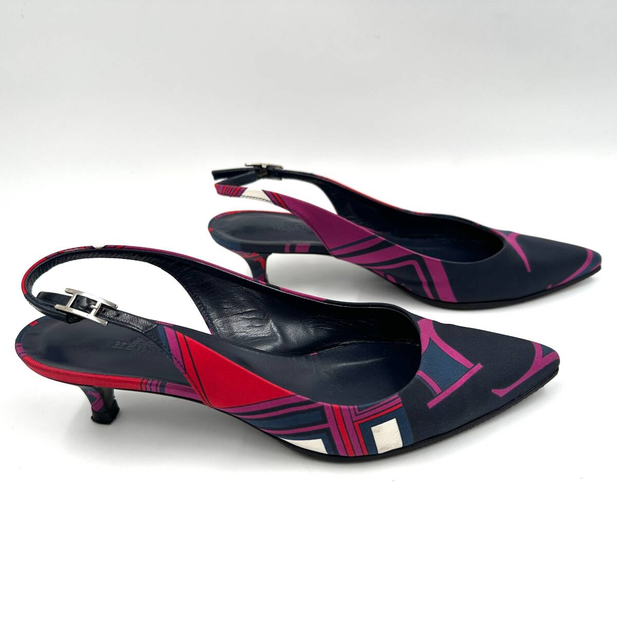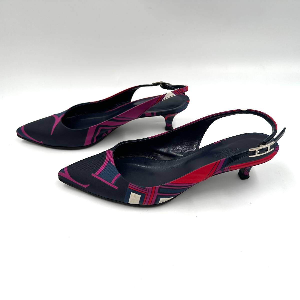 【1円スタート】 極美品 Herms エルメス シルク柄 スリングバック ヒール ストラップ ヒール レディース 靴 シューズ パンプス サイズ36