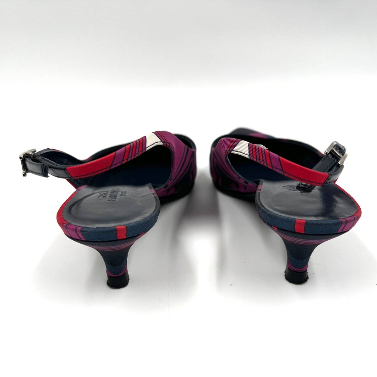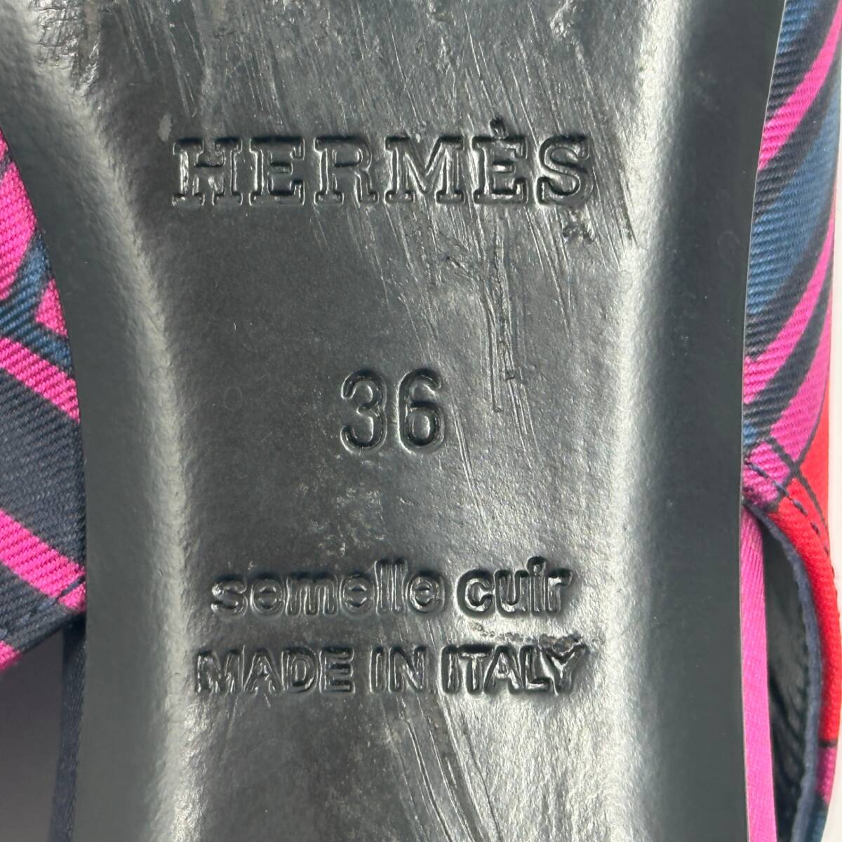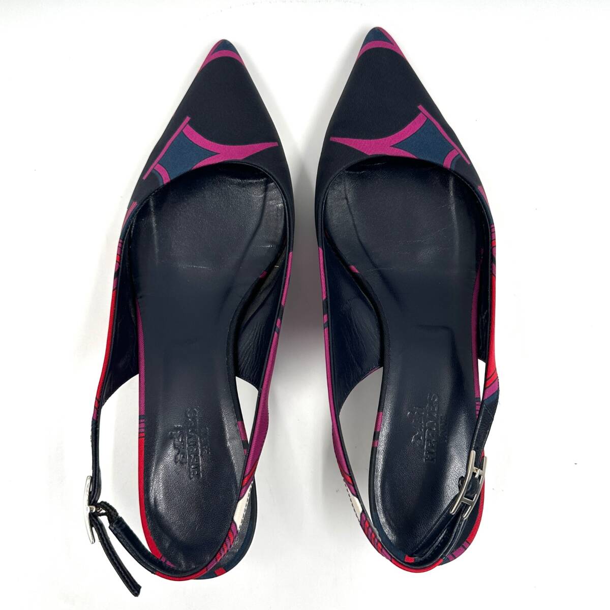 【1円スタート】 極美品 Herms エルメス シルク柄 スリングバック ヒール ストラップ ヒール レディース 靴 シューズ パンプス サイズ36